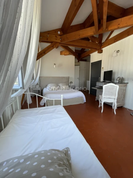 Au sein de Gréoux-les-bains troisième station thermale française en pleine Provence verte dans les basses gorges du Verdon trés beau manoir d'environ 350 m2 datant de 1870 exposé plein sud il est entièrement restauré avec goût et aménagé avec soin en maison d'hôtes et gîte (plus la partie privative) tout en ayant conservé l'auhenticité et le cachet des lieux cette demeure d'exception se situe a 250 m des thermes. Au rez de chausée dans la partie privative: un salon, une salle à manger (avec jardin d'hiver), une cuisine et son cellier ainsi qu'une buanderie, partie chambres d'hôtes: salon/salle à manger avec cheminée et une cuisine équipée ainsi que sa buanderie. Au première étage trois belles chambres,deux salles de bain un dressing et deux toilettes indépendants. Au deuxième étage trois chambres d'hôtes climatisées toutes équipées de leurs salles d'eau et toilettes indépendants. L'accés au gite est totalement indépendant de la maison, de type deux il est classé trois épis (éligible quatre épis) il se compose d'une pièce de vie avec cuisine ouverte, une chambre, une salle de bains et toilettes. A l'exterieur une grande terrasse ombragée avec une vue dégagée sur les collines environantes surplombe l'espace piscine (10X5) avec son pool house et ses toilettes. Plusieurs places de parking à l'entrée de la propriété et deux caves sous la grande terrasse pour le rangement. Ce bien d'exception permet une activité trés rentable du fait de sa proximité des thermes et juste à coté des nombreux départs de randonnée. Rien ne manque, il sera vendu totalement meublé et équipé pour la partie chambres d'hôtes et gîte. N'hesitez pas à me contacter pour plus de renseignements. . - Annonce rédigée et publiée par un Agent Mandataire -