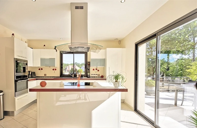 Maison contemporaine 8 pièces – 280 m² située à 1 heure de Paris, à MOISSON (Yvelines) Vous souhaitez un environnement privilégié, calme, verdoyant, sans aucune nuisance mais aussi bénéficier d'espace, de luminosité et de confort tout en demeurant à une heure de Paris, alors je vous invite à découvrir cette propriété conçue pour offrir un cadre de vie très agréable. Au cœur de ce charmant village des Boucles de Seine, en bordure de forêt, cette magnifique demeure de 280 m², en parfait état, très fonctionnelle dispose de prestations de belle facture (cuisine de haut standing, climatisation intégrale, plancher chauffant, ascenseur, pompes à chaleur, alarme,…). Au rez-de-chaussée, une grande entrée dessert d'un côté un espace de vie de 78 m², très lumineux grâce à une triple exposition, composé d'un espace salon, suivi d'un espace dînatoire et d'une cuisine entièrement équipée. Ce très bel espace, avec ses terrasses, permet de profiter pleinement des extérieurs, du parc arboré et de la vue sur la Seine. De l'autre, se découvrent une première suite parentale ainsi qu'un bureau (ou chambre). Un escalier en voute sarrasine dessert le premier étage où se trouve l'espace nuit composé de deux suites parentales, d'une chambre avec douche ainsi que d'une autre chambre. Depuis le rez-de-chaussée, un ascenseur mène au rez-de-jardin qui occupe la surface totale de la maison soit 330 m². Ce dernier est composé d'un garage fermé pouvant accueillir quatre véhicules, d'une buanderie, d'une cave à vin climatisée et d'un grand espace libre ouvert sur le parc paysagé de plus de 8 000 m². Une belle opportunité à visiter et à saisir. Vous n'avez qu'à poser vos valises ! Proximité des commerces, des écoles maternelles, primaire et secondaire Accès en 35 mn à la gare Saint Lazare depuis Mantes la Jolie. Gare de Bonnières à 8 mn A 60 mn de Paris Porte Maillot par l'A13 et l'A14 Giverny et La Roche Guyon à 15 mn , Deauville à 1h15 Les honoraires sont à la charge du vendeur. Les informations sur les risques auxquels ce bien est exposé sont disponibles sur le site Géorisques : www. georisques. gouv. fr. Réseau Immobilier CAPIFRANCE - Votre agent commercial (RSAC N°842 178 493 - Greffe de VERSAILLES) Sophie GAULTIER Entrepreneur Individuel 07 69 59 40 89 - Réf.928016