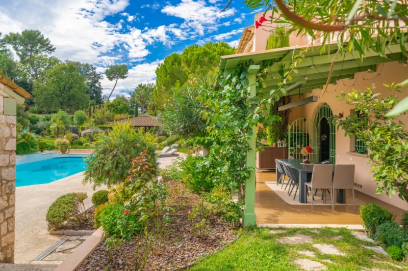 Villa dans domaine sécurisé - MOUGINS Nichée au cœur d’un domaine sécurisé et très recherché, à seulement cinq minutes de la Mougins School et du golf de Mougins, cette élégante propriété d’environ 461 m² offre un cadre de vie paisible et privilégié. Implantée sur un vaste terrain plat et paysager de 7 700 m², elle séduit par ses volumes généreux et son atmosphère raffinée. Le rez-de-chaussée accueille un superbe hall d’entrée, un bureau, un vaste séjour lumineux, une salle à manger conviviale ainsi qu’une cuisine entièrement équipée aux finitions soignées. L’étage est entièrement dédié à l’espace nuit, composé d’une suite parentale avec salle de bain, douche et dressing, ainsi que de quatre chambres, chacune disposant de sa propre salle de bain attenante. La maison principale comprend également un appartement indépendant, idéal pour recevoir famille ou personnel, ainsi qu’une dépendance d’environ 70 m² avec terrasse privée, parfaite pour accueillir vos invités en toute intimité. Les extérieurs, soigneusement aménagés, invitent à la détente : grand parc arboré, piscine au sel, jacuzzi, pool house entièrement équipé, aire de jeux pour enfants et court de tennis complètent cet ensemble harmonieux. Une propriété rare, alliant élégance, confort et sérénité au cœur de Mougins.