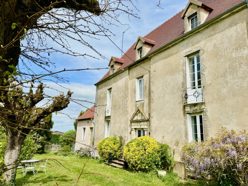 Sud Bourgogne, à 1h30 de LYON, proche de Paray-le-Monial; avec vue imprenable sur les collines environnantes, au calme absolu et sans vis à vis, splendide maison de Maître en pierre du XVII sur un terrain clos et arboré de 3750 m2. Ayant appartenu à d'illustres familles, lumineuse, la demeure de caractère d'une superficie de 215 m2 a su conserver tous les éléments caractéristiques de l'ancien (poutres apparentes, mur en pierre, encadrement en pierre de Bourgogne, cheminée imposante, parquet, hauteur sous plafond, escalier en pierre, plafond à la française.. )et a bénéficié de rénovations au cours de ces dernières années. Excavée, elle est agencée comme suit: au rez-de-chaussée; un bel hall d'entrée dessert de part et d'autres deux vastes pièces à vivre bénéficiant de très grandes cheminées en pierre, 2 cuisines séparées/ possible de transformer l'une d 'elle en chambre de plain-pied avec salle de bains attenante), deux salles de bains et 2 toilettes séparées. Un majestueux escalier en pierre central dessert les étages supérieurs et offre 4 chambres supplémentaires, une salle de bains, des toilettes séparées. Un deuxième escalier en bois permet d'accéder à l'étage supérieur et à une terrasse. Des combles aménageables de 100M2 offrent de nombreuses possibilités d'agrandissement. Deux très vastes caves voutées, un puits, un bassin, un très beau verger et un garage viennent parfaire cette propriété d'exception. Toiture en parfait état. Fosse septique aux normes. Cette splendide propriété pourra convenir à de nombreux projets. Possibilité de création d'activité chambres d'hôtes, gîtes ou idéale en demeure de famille. Terrain piscinable. Proche de toutes commodités(école, commerce, gare), à 10 min d'une gare, à 2h30 de Paris par TGV et à moins de 10 min d'un village dynamique et commerçant. Contactez: Christelle Mosnier Devillard au 06 73 53 16 95.