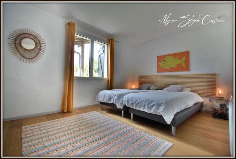 Découvrez cette somptueuse maison biocéphale, véritable havre de paix niché à quelques pas du lac de Soustons et du cœur vibrant de la ville, dans un cadre calme et préservé. D'une surface généreuse de 300 m², cette demeure se distingue par son atmosphère sereine et ses prestations raffinées, où chaque détail a été soigneusement pensé pour offrir confort et élégance. Un double espace de vie, deux univers en harmonie. Cette demeure exceptionnelle se divise en deux logements indépendants de 150 m² chacun, révélant des pièces de vie d'une ampleur rare. Chaque niveau dévoile un vaste salon-séjour de 75 m² baigné de lumière et un poêle à bois pour réchauffer les soirées d'hiver, avec de magnifiques charpentes apparentes et des poutres cathédrales, créant des volumes majestueux où il fait bon se réunir. Les cuisines ouvertes, entièrement aménagées et équipées, deviennent le cœur de ces espaces de convivialité, parfaits pour accueillir amis et famille. Au rez-de-chaussée, vous découvrirez trois chambres, dont une suite avec salle d'eau privative, ainsi que des salles d'eau et wc séparé avec lave mains. L'étage, quant à lui, offre un séjour cathédrale au charme unique, avec un balcon offrant une vue dégagée sur le jardin et piscine, prolongeant la cuisine et le séjour pour des moments de détente en extérieur. La suite parentale, avec son dressing et sa salle d'eau, s'ouvre sur un espace nuit lumineux et apaisant, accompagné de deux autres chambres avec placards, une salle d'eau avec wc et un wc séparé avec lave mains. Des extérieurs pensés pour l'art de vivre. Le jardin, entièrement arboré et aménagé, vous invite à la rêverie. Une piscine, soigneusement intégrée dans l'environnement, vous promet des instants rafraîchissants, tandis qu'une grande terrasse en bois, une cuisine d'été attendent vos moments de partage en famille ou entre amis. Une charmante bodega vient parfaire cet espace extérieur, véritable sanctuaire pour profiter des douces soirées estivales. Un potentiel infini et des espaces annexes fonctionnels. Outre ses nombreuses chambres et pièces de vie, cette maison dispose également d'un espace buanderie, d'un cellier et d'une cave, offrant une multitude de possibilités d'aménagements. Une dépendance de 35 m², pouvant être transformée en bureaux, salle de sport ou atelier, et un carport pouvant accueillir trois voitures, viennent compléter cet ensemble. Lieux de vie et de villégiature à l'année. Cette demeure n'est pas seulement un refuge pour votre famille, elle peut aussi se transformer en une source de revenus locatifs grâce à ses 16 couchages et à sa configuration idéale pour accueillir plusieurs générations. Le tout, entièrement clôturé et sécurisé par un portail manuel, vous garantit une tranquillité totale. Avec son cadre idyllique, à seulement 80 mètres des eaux paisibles du lac et à quelques minutes à pied du centre-ville, cette propriété conjugue à merveille confort moderne, espaces généreux et charme intemporel. Une véritable invitation à la douceur de vivre. Les honoraires sont à la charge du vendeur. Le Diagnostic de Performance Énergétique(DPE) a été réalisé selon une méthode valable mais non fiable et non-opposable. Les informations sur les risques auxquels ce bien est exposé sont disponibles sur le site Géorisques : www. georisques. gouv. fr. Réseau Immobilier CAPIFRANCE - Votre agent commercial (RSAC N°831 457 940 - Greffe de DAX) Myriam SLUNJSKI Entrepreneur Individuel 06 44 19 79 45 - Réf.875173