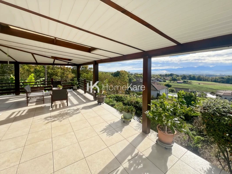À VENDRE 31800 VILLENEUVE-DE-RIVIÈRE Venez vite découvrir cette superbe maison de plain-pied offrant une vue à couper le souffle ! Elle se compose d'un grand salon lumineux avec de larges baies vitrées donnant sur une terrasse de 100 m², où vous profiterez de vos repas la tête dans les montagnes.Derrière le salon se trouve une cuisine équipée et indépendante, ainsi qu'une buanderie. Côté nuit, trois chambres dont une suite parentale et une salle d'eau.Un vrai plus : une dépendance pouvant être aménagée en petit studio indépendant, ainsi qu'un garage pour un véhicule. Côté technique, la maison est équipée de la climatisation, du double vitrage, d'un insert bois, de volets roulants et d'un assainissement individuel conforme. Tout y est ! À l'extérieur, un terrain arboré de 2 500 m² avec une piscine dont le liner est récent.Un bien d'exception que je me ferai un plaisir de vous faire découvrir ! Votre conseiller HomeKare : Pierre GAUVRIT Agent commercial (Entreprise individuelle). HOMEKARE : VENTE - LOCATION - GESTION - SYNDIC