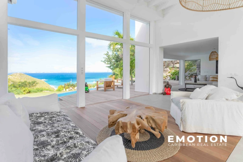 Propriété CAYE BLANCHE - 548 mètres carrés Anse Marcel NOUVEAU LISTING Le cabinet EMOTION REAL ESTATE, vous présente sur le secteur privilégié et recherché d'Anse-Marcel et de sa marina, hors zone PPRN et à l'abri des risques de submersion. À 10 minutes à pied de la plage, des restaurants, et commerces au niveau de la Marina. Le bien se compose au rez-de-chaussée d'une entrée majestueuse, sur un salon, salle à manger de 94 mètres carrés avec plus de 5 mètres de hauteur sous plafond, une cuisine moderne équipée et aménagée avec îlot central et cave à vin ouverte sur les extérieurs, un cellier attenant à la cuisine de 15 mètres carrés et sa buanderie, une laverie. Une première chambre de 46 mètres carrés avec rangements incorporés et salle d'eau avec verrière et douche Italienne, une seconde chambre de 45 mètres carrés avec rangements incorporés et salle d'eau avec verrière et douche Italienne. La troisième chambre de 46 m2 avec rangements incorporés et salle d'eau avec verrière et douche italienne, un local piscine, 132 m2 de terrasses couverte exposées NORD, donnant sur la piscine, jardin et une magnifique vue mer. Un studio extérieur (pour gardien par exemple) de 40 mètres carrés avec cuisine indépendante et salle d'eau. La villa se compose à l'étage d'une chambre master de 60 mètres carrés avec rangements incorporés et salle de bain et douche à l'italienne. Une cinquième chambre de 36.5 mètres carrés avec rangements incorporés et salle d'eau avec verrière et douche Italienne, une sixième chambre de 50 mètres carrés avec rangements incorporés et salle d'eau avec verrière et douche Italienne, une septième chambre de 35 mètres carrés avec rangements incorporés et salle d'eau avec verrière et douche Italienne. En annexe : -Un studio avec sa cuisine et salle d'eau -Un jardin tropical et arboré de 3 300 m2 -Une piscine de 110 m3 -Une terrasse de 53 m2 avec la vue piscine/mer -4 places de parking extérieur sécurisées -Un local piscine/buanderie -Une cabane de jardin pour outils -Un portail électrique -Un groupe électrogène de 45 KVA.