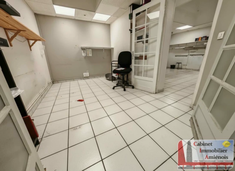 Amiens, Saint Roch : Situé à proximité du Centre Ville, du Coliseum, de la seconde Gare d'Amiens ( la gare Saint Roch), du Parc de la Hotoie : Dans une grande maison divisée, au rez de chaussée : Un local professionnel ou commercial d'environ 85m2 comprenant : - plusieurs bureaux de 16m2, 14m2, 11m2, de 21m2 et en longueur, un dernier de 10m2 - une autre pièce pour les wc ( avec espaces de rangement ) ainsi qu'une cuisine Loyer de 840 EUR HC + 150 EUR de charges soit 990 euros Tout est inclus dans les charges : le chauffage, l'électricité, l'eau (chaude et froide) ! Entrée sécurisée avec porte sécurisée ! Un rafraichissement est à prévoir !