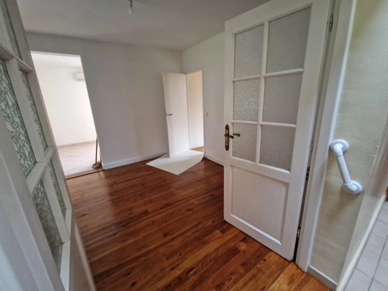 Centre basse ville Maison de plain pied Type 4 Maison de plain pied Type 4 d'environ 102m² située à deux pas du centre basse ville Cuisiné équipée avec insert et clim réversible, salon, véranda avec clim, 2 chambres, salle d'eau, wc indépendant, chaufferie. Chauffage central au fioul avec chaudière neuve. Grand jardin d'environ 3000m² avec arbres fruitiers et deux garages + atelier.