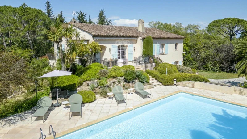 Mougins - Proche du Golf de Cannes-Mougins À proximité du pittoresque vieux village de Mougins, réputé pour ses nombreuses galeries et restaurants, situé à la fois dans un quartier très résidentiel à la lisière d'un parc national et à quelques pas du Golf de Cannes- Mougins et à seulement quelques minutes de Cannes, cette très charmante et élégante villa offre lumière, espace et tranquillité. La villa a été entièrement restaurée et décoré avec goût dans un style moderne. Une terrasse ombragée avec barbecue aménagée en salle à manger d’été donne sur la piscine et sur un magnifique jardin méditerranéen paysagé. Ref 149 -- Rez-de-chaussée : - Hall d’entrée - Toilettes invités - Cuisine entièrement équipée avec un coin repas ouvrant sur la terrasse aménagée en salle à manger d’été. - Double salon avec chemin ouvrant sur la terrasse surplombant la piscine. - Chambre double avec salle de bain ensuite et dressing- Climatisation - Chambre double avec salle de douche ensuite- Toilettes- Climatisation. - Buanderie avec machine à laver et sèche linge. Rez-de-jardin : - Chambre double avec salle de douche et toilettes. Dressing. Accès à l’extérieur - Chambre avec 2 lits simples- Accès à l’extérieur - Salle de bain indépendante - Kitchenette indépendante Piscine (12m x 6 m) Parking pour 3 ou 4 voitures Prestations supplémentaires: Barbecue, Satellite, portail électrique, alarme, Fibre, coffre fort, table ping pong.