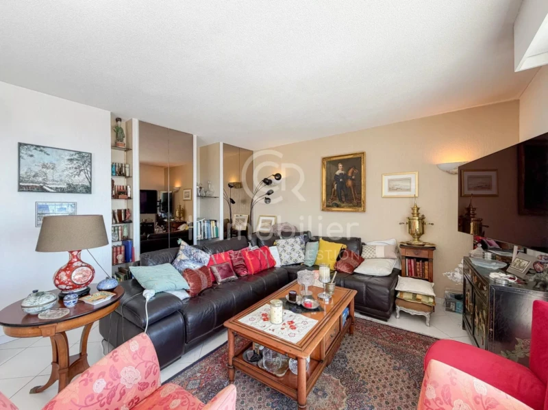 Villa de toit bocca Centre - T4 - GARAGE CAVE PARKING Excusivité! RARE à la vente, en plein centre de Cannes-La-Bocca et à deux pas de toutes les commodités, transports en communs, superbe vue MER des îles jusqu’à l’Estérel, pour cette villa de toit de 105m² et sa terrasse d'angle de 78m². Copropriété année 2000. L'appartement se compose d'une entrée un un salon/séjour ouvert sur la grande terrasse d'angle (Sud / Ouest), une cuisine équipée, 3 chambres, une salle de bains avec WC, une salle d'eau, WC séparé. L'ensemble de l'appartement est climatisé en réversible. En annexe, une cave, grand garage ainsi qu'un parking boxable complètent cette offre. Charges mensuelles 200 euros tout électrique individuel Taxe foncière 1800 euros