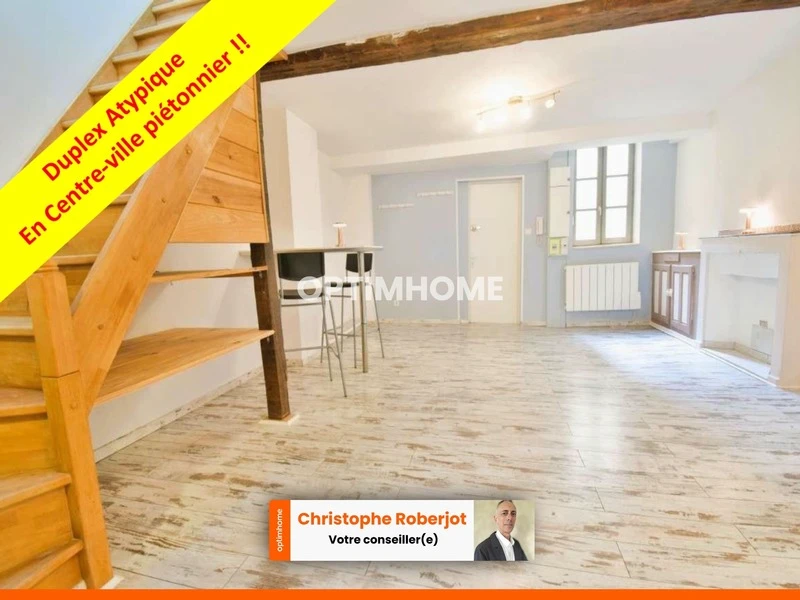 J'ai le plaisir de vous présenter ce duplex cocooning au cœur du centre ville de Chalon sur Saône, au calme absolu et au pied de tous les commerces de proximité. Ainsi, vous êtes au cœur des marchés hebdomadaires de l'hypercentre et vous avez à votre disposition à 250 mètres, 500 places de parking gratuit. Il s'agit d'un duplex de 65m2 au sol (57m2 en loi Carrez) qui est cosy et fonctionnel. Tout a été pensé pour optimiser les espaces de cet appartement qui se situe au 3ème et dernier étage et qui jouit de beaux volumes d'aménagement. Ainsi vous y accédez par un petit couloir/coursive extérieure à partager, qui vous invite à pénétrer dans l'appartement pour y découvrir une entrée dans un espace de vie traversant de 29m2 se composant d'un salon/séjour parqueté prolongé par une cuisine équipée ouverte avec plan de travail. A ce niveau, vous découvrirez une salle d'eau avec un wc et espace buanderie. Vous accèderez à l'étage supérieur par un escalier en bois qui dessert les 2 chambres de ce duplex et d'un bureau dressing de 8m2 au sol avec placard. Plusieurs espaces de rangement sont présents dans l'appartement; un garage à vélos est à disposition de chacun au rez de chaussée. L'accès à la résidence est sécurisé par un interphone. A visiter absolument !! Nombre de lots de la copropriété: 21, Montant moyen de la quote-part annuelle de charges (budget prévisionnel) : 1065€ soit 88€ par mois. Les honoraires sont à la charge du vendeur. Les informations sur les risques auxquels ce bien est exposé sont disponibles sur le site Géorisques : www. georisques. gouv. fr. Contactez Christophe ROBERJOT Entrepreneur Individuel, Agent commercial OptimHome (RSAC N°919 046 110 Greffe de CHALON SUR SAONE) 06 41 86 30 03 (réf. 595507 )