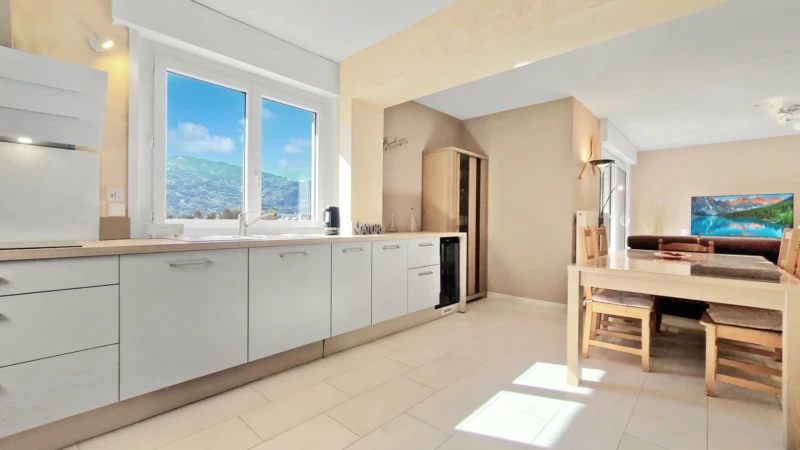 Dernier étage avec vue pour ce T4 traversant à Cluses Une exclusivité, à découvrir sans tarder ! Au centre de la commune de Cluses (74300), à proximité immédiate de toutes les commodités, je vous propose en exclusivité ce vaste appartement de type T4, situé au dernier étage, traversant et au style résolument moderne, offrant une vue dégagée et spectaculaire sur les massifs environnants. Développant une surface totale de 101,55 m2, dont 92,45 m2 en loi Carrez, il se compose de trois chambres, d’une terrasse couverte, d’une cave, d’un garage privatif, d’une place de stationnement libre ainsi que d’un jardin collectif. Implanté au quatrième étage d’une résidence soigneusement entretenue, construite en 1975 et équipée d’un ascenseur, cet appartement a fait l’objet d’une rénovation intégrale en 2018. Exposition sud-ouest, belle luminosité, environnement calme, volets électriques, fibre optique, nombreux espaces de rangement et absence totale de vis-à-vis depuis le séjour : autant d’éléments qui rendent ce bien particulièrement rare sur le secteur. Pour ce bien, une prise de contact rapide est fortement conseillée. Agencement : -Entrée avec placard ; -Séjour avec cuisine ouverte de 39,25 m2 ; -Terrasse de 5,55 m2 ; -Cellier buanderie de 3,33 m2 ; -Trois chambres de 9,62 m2, 9,44 m2 et 14,26 m2 ; -Salle de bains de 4,66 m2 ; -WC indépendant ; -Un garage de 12,65 m2, une cave de 9,34 m2, une place de stationnement libre ainsi qu’un jardin collectif complètent l’ensemble ; Charges trimestrielles : -Charges générales, entretien et ascenseur : 507,17 euros ; -Chauffage et eau chaude : 415,47 euros ; -Fonds travaux : 46,80 euros ; La copropriété est composée de 50 lots principaux. Aucun travaux de grande ampleur n’est programmé. Une procédure est actuellement en cours, parfaitement suivie par le syndic. Une vidéo de présentation du bien est disponible directement dans cette annonce ainsi que sur mes réseaux sociaux : Facebook, Instagram, YouTube : @agencemaitre. Je vous invite à me contacter dans les meilleurs délais, avec un plan de financement finalisé, afin de bénéficier d’une visite prioritaire et de pouvoir vous positionner rapidement. Environnement : -À moins de quinze minutes à pied : crèche, école, collège, lycée, centre-ville, Thyez, Scionzier, supermarché, boulangerie, commerces et boutiques, restaurants, tennis, piscine, salle de fitness, médecin, pharmacie ; -Proximité immédiate d’un arrêt de bus desservant la ligne 3 (gare de Cluses, Thyez Valignons) ainsi que de la gare SNCF, routière et TGV de Cluses avec liaisons vers Coppet en Suisse, Saint-Gervais-les-Bains et Annemasse ; -Le domaine skiable de Romme accessible en moins de trente minutes ; Taxe foncière : 1 077 euros par an. Chauffage et eau chaude collectifs assurés par une chaudière alimentée aux copeaux de bois. Vous avez un projet d’achat ou de vente ? Besoin d’une estimation ? Je suis votre interlocuteur privilégié sur la Haute-Savoie et la Savoie (74 et 73), l’Ain (01) ainsi que le Canton de Genève. Chers confrères, mon agence demeure ouverte à la collaboration, sous réserve de la présentation d’un acquéreur qualifié n’ayant pas déjà pris contact avec moi. Les honoraires de l’agence sont à la charge du vendeur. Les informations relatives aux risques auxquels ce bien est exposé sont disponibles sur le site Géorisques : georisques.gouv.fr