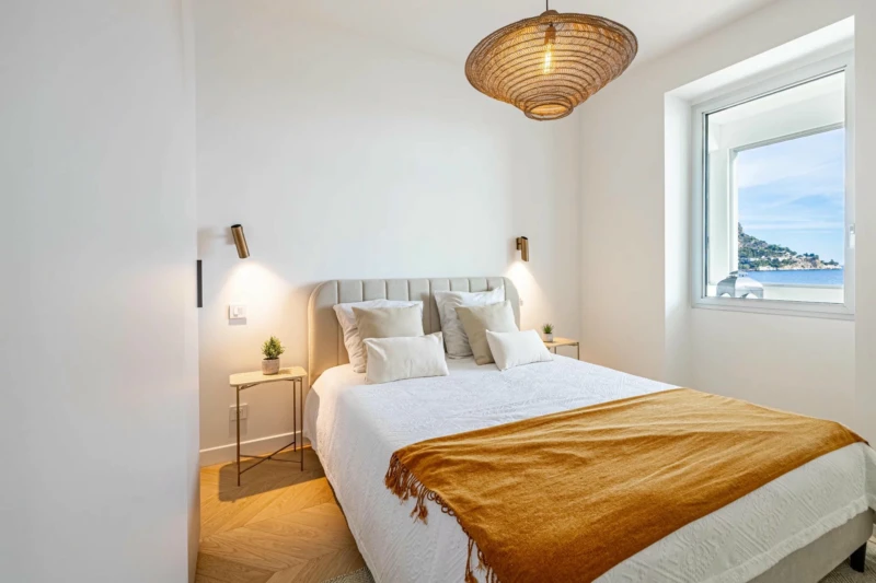 Eze - Spectaculaire appartement 2p avec terrasse, vue mer panoramique et parking // Eze // Situé au sein d’une petite copropriété sécurisée en bord de mer, cet appartement 2 pièces entièrement rénové et meublé offre un cadre de vie exceptionnel, les pieds dans l’eau. D’une surface parfaitement optimisée, il se compose d’un séjour lumineux ouvert sur une terrasse de type loggia offrant une vue mer à couper le souffle, d’une cuisine sur mesure entièrement équipée, d’une chambre avec rangements et d’une salle d’eau/wc moderne. L’ensemble a été rénové avec des matériaux de qualité et pensé pour offrir un confort optimal : double vitrage, climatisation réversible, isolation soignée et équipements récents. Exposé plein sud, l’appartement bénéficie d’une luminosité rare tout au long de la journée. La résidence, parfaitement entretenue, dispose d’un portail électrique, d’un système de vidéosurveillance et d’un accès direct à la mer. Un emplacement de stationnement privatif complète ce bien d’exception. Un lieu unique, idéal pour une résidence principale, un pied-à-terre en bord de mer ou un investissement locatif haut de gamme. Bien rare sur le marché. Bien soumis au statut de la copropriété : XX lots principaux. Charges courantes annuelles : 840euros Pas de procédure en cours. Honoraires charge vendeur. Le rapport ERRIAL sur les risques auxquels ce bien est exposé est disponible en cliquant sur le lien : https://errial.georisques.gouv.fr