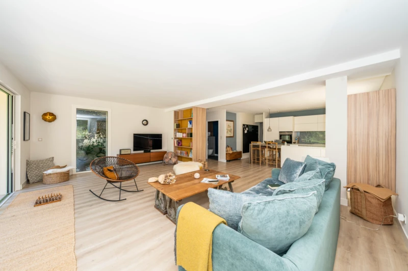 Pour les amoureux de la nature, il est impératif de venir visiter ce magnifique appartement niché dans un parc de 3Hectares. Il sera vous séduire par ses volumes généreux et son ambiance particulière. L'appartement entièrement de plain pied mesure 130m2 et est composé de la façon suivante : Un espace à vivre avec cuisine équipée et ilot central de 56m2, 2 chambres avec placards et accès sur une cours intérieur, une salle de douche avec toilette, une chambre avec salle de douche et toilette, une dernière chambre avec salle de bains et toilette. Vous pourrez profiter de 2000m2 de jardin plat, avec espace extérieur couvert, un espace de stationnement pour au moins 10 voitures. ainsi qu'un accès privilégié sur une plage quasiment privée pour se rafraichir dans le loup. Une piscine collective au milieu de la verdure complète cette offre. Vous l'aurez compris cet appartement n'est pas commun et il réserve bon nombre de surprise ! A venir visiter pour les amoureux de lieu exceptionnel dans un environnement exceptionnel.
