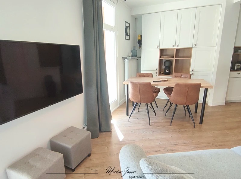 Vous souhaitez investir dans cette belle station des Pyrénées ? Bienvenue à LA MONGIE, résidence ''BERO BISTO''. Idéalement placé à proximité des navettes, vous accèderez très facilement aux pistes de ski et à toutes les commodités (commerces, restaurants, office du tourisme, parking...). Situé au rez-de-chaussée de cette agréable résidence, sa terrasse est LE vrai atout. Elle vous offrira une vue plongeante sur la station et ses sommets. Cet appartement de 28m2 a été entièrement rénové en 2020 avec des matériaux de qualité allemande. La cuisine est intégralement équipée (grand réfrigérateur avec congélateur 3 tiroirs, four, micro-ondes, lave-vaisselle, machine à laver lavante séchante, petit électroménager). Un espace chambre cabine ainsi qu'un canapé gigogne, permet d'accueillir 4 personnes dans le plus grand confort. Les sanitaires sont composés d'une salle d'eau très fonctionnelle avec WC. L'appartement est d'excellente qualité et offre un très bon rendement locatif été comme hiver. Les plus : - Une très belle terrasse avec vue plongeante sur la station et les montagnes, - De nombreux rangements, - Un casier à ski au RDC. Tous ses atouts en font un très bon investissement pour des moments en famille et/ou entre amis, mais également pour de la location en toutes saisons. Vous souhaitez faire un investissement de qualité ? N'hésitez pas, possibilité d'une première visite en vidéo. Nombre de lots de la copropriété : 120, Montant moyen annuel de la quote-part de charges (budget prévisionnel) : 1692€ soit 141€ par mois. Les honoraires d'agence sont à la charge de l'acquéreur, soit 10,00% TTC du prix hors honoraires. Les informations sur les risques auxquels ce bien est exposé sont disponibles sur le site Géorisques : www. georisques. gouv. fr. Réseau Immobilier CAPIFRANCE - Votre agent commercial (RSAC N°840 096 101 - Greffe de TARBES) Marine JOSSE Entrepreneur Individuel 06 46 41 28 02 - Réf.940630