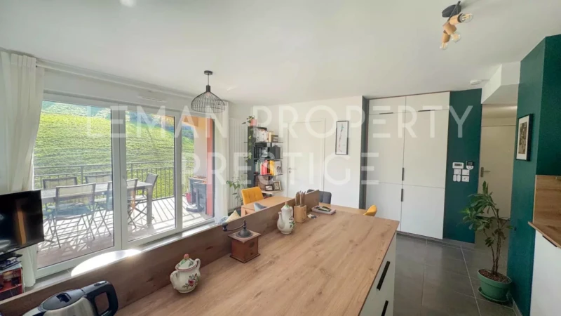 EXCLUSIVITE MARIN 3 PIECES TERRASSE A seulement 10 minutes de Thonon-les-Bains, au coeur du village, dans résidence récente située au pied de l'église, bénéficiez d’un cadre privilégié : paisible et verdoyant. Beau 3 pièces en parfait état situé en étage avec ASCENSEUR. La pièce de vie s’ouvre sur une terrasse abritée offrant vue dégagée sur verdure, la cuisine équipée ouverte prolonge l’espace à vivre dans une atmosphère conviviale. L'appartement comprend deux chambres avec dressing, une salle de bains, WC séparés. Cave, PARKING EN SOUS/SOL et BOX viennent parfaire cet ensemble harmonieux. Venez découvrir cette belle affaire avec votre partenaire LEMAN PROPERTY PRESTIGE Honoraires charge vendeur Pas de procédure en cours Charges annuelles : 2000 euros Nbre de lots : 25 DPE C DES C Les informations sur les risques auxquels ce bien est exposé sont disponibles sur le site Géorisques : georisques.gouv.fr