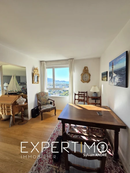Exclusivité ! Dans le très prisé quartier du Carré d'Or, dans la célèbre tour 'Le Grand Pavois », découvrez ce T4 de 92m2 situé en étage très élevé et exposé Sud/Sud-Ouest. Dès votre arrivée, vous serez séduits par la vue exceptionnelle et panoramique sur la mer et ses îles, sans aucun vis-à-vis, ainsi que sur Notre Dame de la garde. Ce bien exceptionnel aux agréables volumes vous offre un séjour de 46m2 ouvert sur une cuisine semi-équipée à moderniser et une terrasse sur laquelle vous pourrez vous détendre et profiter de la vue. L'espace nuit est composé de 3 chambres dont 2 avec vue mer, une salle de douche refaite et un toilette séparé. Ce bien possède également de nombreux rangements, un sol en parquet massif, une porte blindée, et une place de parking en sous-sol. La visite se poursuit au 31ème et dernier étage avec une terrasse collective et sa piscine, ainsi qu'une vue à 360o sur Marseille. Situation avantageuse proche des commerces, restaurants, métro, bus, écoles et grand axe autoroutier...Rare à la vente . Copropriété de 330 lots, charges trimestrielles 1484EUR (agent de sécurité, eau froide et chaude, chauffage au sol...), Classe énergie: B. Mandat numéro 97258. Les informations sur les risques auxquels ce bien est exposé sont disponibles sur le site Géorisques : www.georisques.gouv.fr - Annonce rédigée et publiée par un Agent Mandataire -
