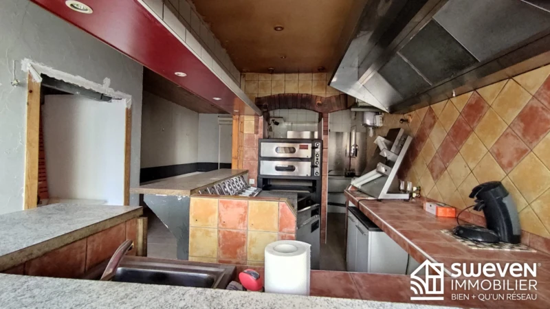 Trouillas, jolie commune des Aspres, à 30min de l'Espagne et 2h de Barcelone, sur avenue principale. Immeuble, 2 faces en angle de rue en R+3, composé d'un appartement T3 d'environ 80m2 avec entrée, séjour, cuisine indépendante, salle d'eau avec WC au 1er étage, 2 chambres et placards au deuxième et dernier étage en bon état. Les ouvertures sont en PVC double vitrage, radiateurs neufs à inertie/fluide basse consommation. Au rez-de- chaussée, un local commercial de 40m2 environ avec vitrine et grille. Ce local est aménagé et équipé en pizzéria avec matériel professionnel ( fours, frigos, hotte, bac de plonge, comptoir et salle pour service sur place ). Ce bien peut parfaitement correspondre à un artisan/commerçant, avec son logement privé au dessus du magasin, mais aussi pour un investissement locatif avec la possibilité de louer l'appartement et le local commercial entre 600 et 700€/mois chacun offrant une rentabilité de 10%. Honoraires à la charge du vendeur. Classe énergie E, Classe climat C. Les informations sur les risques auxquels ce bien est exposé sont disponibles sur le site Géorisques : georisques.gouv.fr. Votre conseiller SWEVEN IMMOBILIER : Stéphane Simon Agent commercial (Entreprise individuelle) RSAC 442 944 195 de Perpignan RCP ALLIANZ IARD 59 661 778