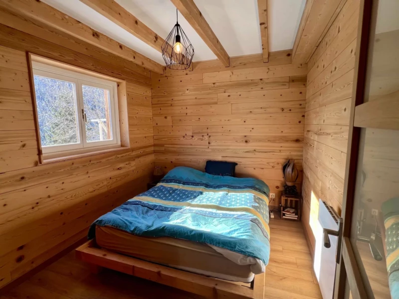Chalet Aillon le Jeune 73340 vue panoramique Nous proposons à la vente ce chalet d’une superficie habitable de 67 m² entièrement repensé et rénové sur la commune d’Aillon le Jeune, dans le quartier résidentiel de la Mense. Ce chalet propose au rez-de-chaussée deux chambres, une salle d’eau (douche à l’italienne) toilette et à l’étage : une cuisine ouverte sur un séjour de 37 m² avec balcon. Une terrasse d’une superficie de 50 m² offre une vue spectaculaire sur la vallée et la station. Les plus : poêle à granulés, panneaux photovoltaïques en production directe, casier à ski, atelier derrière la maison (14 m²) isolation récente, 3 places de stationnement privatives. Accès au chalet par un escalier extérieur. Terrain aménagé de 764m2. N'hésitez pas à nous contacter pour tous renseignements complémentaires.