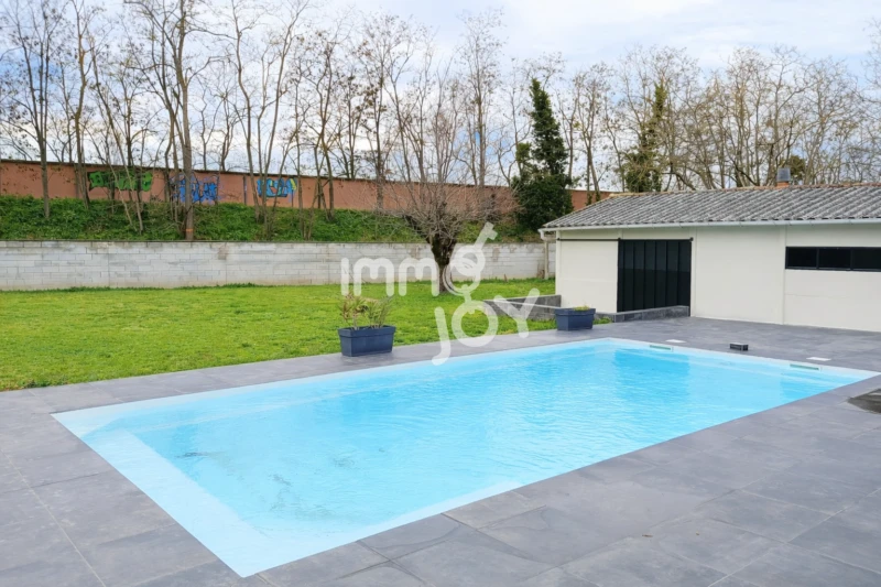 Votre conseiller IMMOJOY vous propose sur la commune d'Aucamville, dans un environnement calme, une maison T4 de 96 m2 implantée sur une parcelle de 1 650 m2 exposée sud/ouest. La maison se compose d'une pièce de vie de 42,37 m2 avec cuisine équipée, bénéficiant d'une climatisation réversible, offrant un espace lumineux et convivial. Un WC indépendant complète la partie jour. L'espace nuit comprend trois chambres, dont une suite parentale de 22,51 m2 avec salle d'eau privative et dressing. À l'extérieur, vous profiterez d'un agréable espace de vie avec piscine, terrasse couverte de 30 m2, ainsi qu'un vaste jardin disposant d'un puits. Un garage de 20 m2 et une dépendance de 30 m2 viennent compléter l'ensemble. Prestations : Double vitrage Volets roulants électriques Portails électriques Chauffage électrique Climatisation réversible dans la pièce de vie Eau chaude par cumulus Électricité en 380 V triphasé Maison offrant de beaux volumes et un fort potentiel, idéale pour une famille ou un projet nécessitant des annexes. Vous souhaitez vendre, acheter ou réaliser une estimation gratuite, contactez Francis spécialiste du secteur : BLAGNAC - FENOUILLET AUCAMVILLE- TOULOUSE Cette annonce vous est proposée par LOPEZ FRANCIS - EI - NoRSAC: 404 148 447, Enregistré au Greffe du tribunal de commerce de TOULOUSE