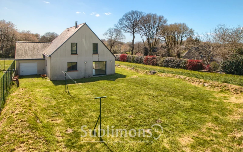 Maison contemporaine – Brandivy – 152 m² – Calme absolu. À seulement 500 mètres du bourg de Brandivy et à 10 minutes de Pluvigner et Grand-Champ, découvrez cette superbe maison contemporaine construite en 2011, développant environ 152 m² habitables, implantée dans un environnement calme, sans vis-à-vis, sur une parcelle d'environ 1 100 m². Dès l'entrée, vous serez séduits par une belle pièce de vie lumineuse offrant de généreux volumes et une atmosphère chaleureuse, ouverte sur une cuisine américaine. L'ensemble s'ouvre naturellement sur une grande terrasse de 52 m², véritable prolongement de l'espace de vie, idéale pour profiter des beaux jours en toute intimité. Le rez-de-chaussée propose une véritable vie de plain-pied avec une suite parentale confortable disposant de sa salle d'eau privative, un WC indépendant, ainsi qu'un bureau disposant d'un accès indépendant, parfait pour une activité professionnelle, le télétravail ou un espace autonome. Une belle buanderie fonctionnelle vient compléter ce niveau, ainsi qu'un garage. À l'étage, vous trouverez trois belles chambres lumineuses, une mezzanine ouverte offrant un espace polyvalent (coin détente, jeux ou lecture), ainsi qu'une salle de bain avec douche et d'un WC. Un grenier accessible depuis le garage, offre un espace de stockage supplémentaire appréciable. L'extérieur offre un cadre paisible et verdoyant, propice à la détente et aux moments de convivialité en famille ou entre amis. Un bien rare sur le secteur, alliant confort moderne, fonctionnalité et qualité de vie, à proximité immédiate des commodités. Honoraires à la charge du vendeur. Classe énergie C, Classe climat B Montant moyen estimé des dépenses annuelles d'énergie pour un usage standard, établi à partir des prix de l'énergie de l'année 2021 : entre 2100.00 et 2900.00 €. Les informations sur les risques auxquels ce bien est exposé sont disponibles sur le site Géorisques : georisques.gouv.fr. Votre conseiller SUBLIMONS MORBIHAN : Pierre GEORGES Agent commercial (Entreprise individuelle) RSAC 994 888 477 RCP MMA