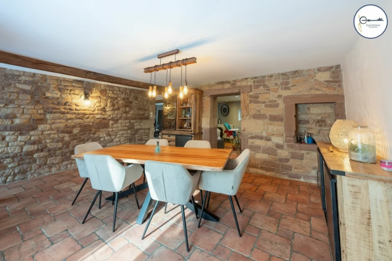 En exclusivité, située sur l'axe Épinal Ramberviller, au coeur du village de Brû, cette ferme vosgienne allie authenticité et convivialité. Édifiée sur un terrain de 1 310 m2, elle offre un cadre paisible, en lien direct avec la nature. La maison développe 181,45 m2 habitables. Le rez-de-chaussée comprend deux entrées, une salle à manger, un salon et une cuisine donnant accès à une terrasse d'environ 42 m2. Une buanderie et une salle de d'eau complètent ce niveau. À l'étage, l'espace nuit se compose de trois chambres, d'une seconde salle de bain et d'une mezzanine modulable pouvant accueillir différents usages. Un grenier aménagé ainsi que des combles exploitables offrent des possibilités d'aménagement supplémentaires. La propriété dispose également d'un garage de plus de 36 m2 avec un espace de stockage à l'étage d'environ 20 m2, ainsi que d'un appentis destiné au rangement. Le bien est équipé de systèmes de chauffage : une chaudière à granulés et un insert bois. Le terrain arboré entoure la maison et permet d'envisager divers aménagements extérieurs. Ce bien conviendra à ceux qui recherchent de beaux volumes, le calme et un joli potentiel, dans un environnement naturel et accessible. Réf : 189 Pour plus d'informations ou pour organiser une visite, contactez :S. Kerboua Agent commercial RSAC 983 193 392 Bien non soumis au statut de la copropriété.Honoraires à la charge du vendeur. Les informations sur les risques auxquels ce bien est exposé sont disponibles sur le site : georisques.gouv.fr
