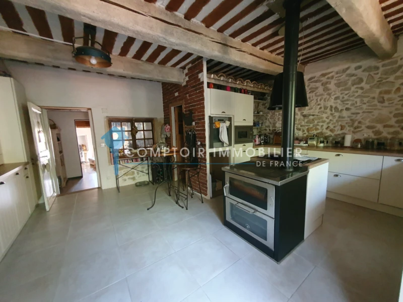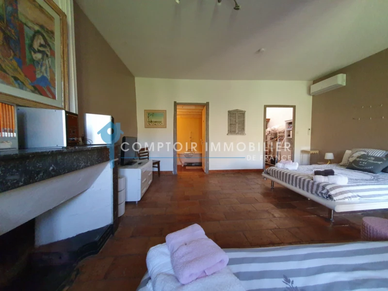 ENTRE UZES, NIMES ET AVIGNON : Grande maison de village en pierres avec jardin, parking et 2 terrasses avec potentiel locatif. Située au centre d'un village charmant avec boulangerie, commerces de proximité, restaurants, ce bien au charme indéniable est équipé d'une climatisation réversible par pompe à chaleur air/air. La maison offre au rez-de-chaussée : 2 caves indépendantes (chacune de 70 m2), Entrée principale avec escalier menant au 1er étage où vous trouverez un beau Séjour avec cheminée insert ouvert sur Salle à manger, WC, Grande Cuisine entièrement équipée avec accès sur le jardin privé arboré d'oliviers et pouvant accueillir une petite piscine, suite parentale avec Salle de bains + douche et baignoire (11 m2) et WC, 2ème chambre avec sa propre terrasse. Au 2ème étage : Suite parentale avec salle de bains et WC, suite parentale avec salle de bains, WC indépendant, grand grenier aménageable avec mezzanine. 3ème étage : Chambre/salon avec accès à terrasse tropézienne et sa vue dégagée au-dessus des toits du village Possibilité location de tout ou partie de la maison et option achat en sus grange/garage aménageable sur 2 niveaux. Au coeur d'une superbe région avec potentiel touristique immense et pour tous les sports de plein air. A seulement 7 kms de l'historique Pont du Gard, à 20 km de la ville médiévale d'Uzès avec son célèbre marché, idéalement située pour les liaisons avec les aéroports et les gares TGV de Nîmes (15 km) ou Avignon (25 km). A 10 km de l'autoroute A9 et 50 minutes de la mer. Cette annonce vous est proposée par Bruno CAMPOREALE - EI - NoRSAC: 879820249, Enregistré à Greffe du tribunal de commerce de NIMES COMPTOIR IMMOBILIER DE FRANCE - Plus d'informations sur cif-immo.com - « Les informations sur les risques auxquels ce bien est exposé sont disponibles sur le site Géorisques : www.georisques.gouv.fr » - Annonce rédigée et publiée par un Agent Mandataire -