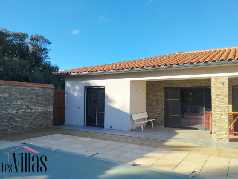 Située dans un environnement privilégié, découvrez cette jolie maison moderne de plain-pied de 127 m2 utiles, érigée sur une parcelle de 5253 m2 entièrement cloturée et arborée. Elle offre de bonnes prestations et apporte tout le confort attendu tout en étant dans la nature et vous offre une belle vue sur les Albères et la Mer. Un salon / séjour de 45 m2 communique avec une cuisine semi ouverte entièrement équipée et au goût très actuel, ainsi qu'un cellier. Tout en faisant face au jardin et à la piscine, vous pourrez apprécier la chaleur du poêle à bois et la tranquillité des lieux. 1 suite parentale avec salle d'eau - dressing - wc vous offrira intimité et confort, en plus des 2 autres chambres, la salle d'eau et le wc indépendant. Une piscine de 7 x 4 m entourée d'une belle terrasse de 36 m2 (bois et carrelage) et une belle annexe pour la cuisine d'été vous apporteront beaucoup de satisfaction durant les belles journées d'été. Les plus à noter: Menuiseries alu et volets électriques - radiateurs à accumulation et Poêle à bois - garage de 26 m2 + carport - 2 remises- Très bons diagnostics A Dans un secteur très prisé des Aspres à proximité de Céret et des Albères, ce bien peut convenir à une résidence principale comme à du secondaire ou pour de la rentabilité locative. Dans tous les cas, vous n'aurez qu'à poser les valises ! Honoraires à charge vendeur Les informations sur les risques auxquels ce bien est exposé sont disponibles sur le site www.géorisques.gouv.fr Pour tout contact: Laurence Caillault - 06 73 64 00 32 RSAC Perpignan: 452 895 923