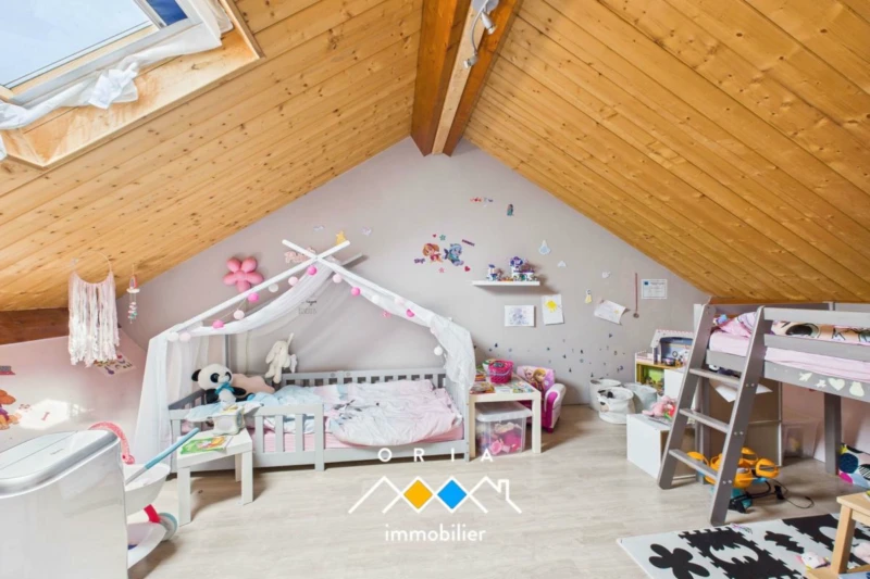 Dans une rue paisible de Chambley, cette maison à ossature bois construite en 2001 séduit par son charme et ses volumes généreux. Édifiée sur une parcelle de 1 662 m², elle développe plus de 200 m² habitables et offre un cadre de vie idéal pour une famille en quête d'espace et de sérénité. Dès le seuil franchi, l'espace s'ouvre sur un vaste séjour lumineux qui respire, où de larges baies laissent entrer le soleil et offrent une continuité naturelle vers la terrasse et le jardin. La cuisine ouverte, conviviale et fonctionnelle, accompagne harmonieusement ce lieu de vie où l'on imagine déjà de longs moments partagés en famille ou entre amis. La maison s'adapte aux besoins de chacun. Le rez-de-chaussée accueille une chambre et de beaux espaces annexes, dont une buanderie pratique et un garage intégré. À l'étage, le palier offre une vue plongeante sur le séjour. La suite parentale incarne un véritable cocon avec son dressing et sa salle de bains mêlant baignoire et douche. Une seconde chambre complète ce niveau. Le dernier étage propose encore deux chambres supplémentaires, idéales pour les enfants, un espace bureau ou une salle de jeux selon vos envies. Chaque détail technique témoigne d'un soin particulier : construction en ossature bois avec isolation par l'extérieur, chauffage assuré par un poêle à granulés de dernière génération, menuiseries double vitrage avec volets motorisés. Tout est pensé pour conjuguer authenticité, confort et efficacité. À l'extérieur, le temps suspend son vol. La grande terrasse s'ouvre sur un jardin plat et entretenu, offrant un cadre de vie paisible où se dessinent vos plus beaux souvenirs. Entre jeux d'enfants, soirées d'été et moments de détente, cet écrin de verdure appelle à profiter pleinement de chaque instant. Chambley, un cadre de vie préservé et pratique Habiter Chambley, c'est choisir un environnement résidentiel calme et verdoyant, tout en restant connecté aux grandes villes voisines et en conciliant vie professionnelle et familiale. Au quotidien, la commune dispose de commodités essentielles avec une école primaire et une boulangerie artisanale, qui renforcent son esprit de village convivial. Chambley est également connue pour sa base aéronautique et son meeting international, symbole d'un dynamisme unique, tout en offrant la tranquillité et le charme d'un village entouré de nature. Cette maison réunit espace, confort et environnement privilégié. Une opportunité rare à Chambley pour créer un véritable foyer familial. Les informations sur les risques auxquels ce bien est exposé sont disponibles sur le site Géorisque : https://www.georisque.gouv.fr La présente annonce immobilière est présentée par Jimmy MARQUET EI - Numéro RSAC : NANCY 442051884, agent commercial de la SARL ORIA Immobilier.