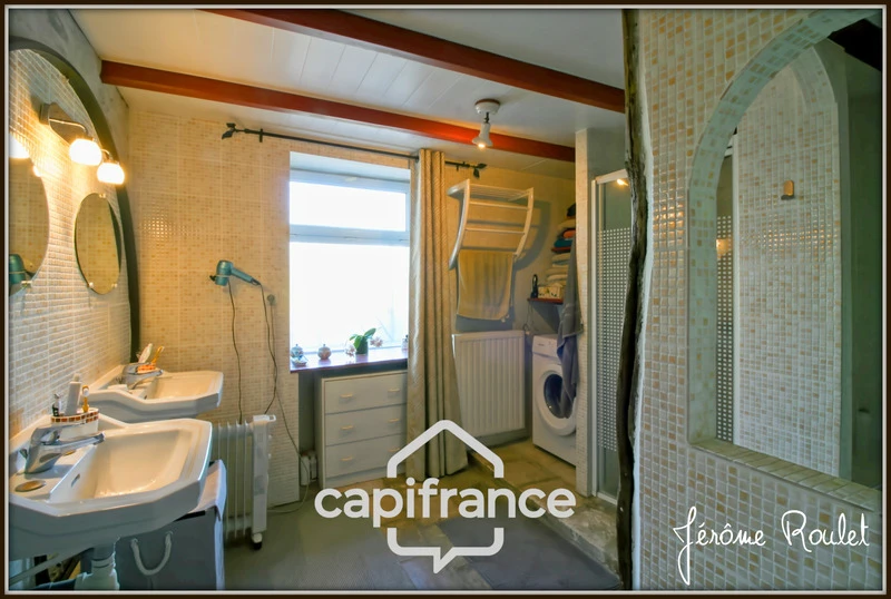 Je vous invite à découvrir cette belle maison en pierre, de 170 m² habitables, située sur la commune de Champigny En Rochereau (10 minutes de Neuville et Vouillé, accès Poitiers en 20 minutes) Côte prestation, vous y trouverez, en RDC, une grande pièce de vie de 57 m² comprenant séjour et salon avec poêle à bûches, une cuisine entièrement aménagée et équipée, une grande salle de bains et un grand cellier. A l'étage, un palier qui dessert un coin bureau, 4 belles chambres (de 12 à 20 m²) dont 1 avec dressing et des WC séparés. En complément, une grange de 100 m² qui comprend atelier (ancienne écurie), garage et stockage + une dépendance type petite maisonnette indépendante (25 m²) raccordée en eau et électricité. Maison très bien entretenue, ainsi bien à l'intérieur que pour les extérieurs. Pas de travaux à prévoir ! Le terrain de plus de 2 270 m² est entièrement clos (portail motorisé) et paysagé et, cerise sur le gâteau, il comprend une parcelle complémentaire de plus de 2 400 m² en terrain à bâtir ! Autre point fort : la présence d'un puits dans le cellier (avec sa pompe immergée) pour l'entretien et l'arrosage des extérieurs. Profitez de la tranquillité de la campagne tout en étant à proximité des services proposés sur la commune (2 boulangeries, supérette, boucher-charcutier, écoles, médecin, ostéopathe, infirmières, pharmacie, salons de coiffure, esthéticienne) et accessibles en quelques minutes en voiture. Je vous attends pour échanger sur cette maison et vos critères de recherche. Seulement chez CAPIFRANCE, je reste ouvert à l'inter-agence. Les honoraires d'agence sont à la charge de l'acquéreur, soit 5,78% TTC du prix hors honoraires. Les informations sur les risques auxquels ce bien est exposé sont disponibles sur le site Géorisques : www. georisques. gouv. fr. Réseau Immobilier CAPIFRANCE - Votre agent commercial (RSAC N°790 136 352 - Greffe de POITIERS) Jérôme ROULET Entrepreneur Individuel 06 03 56 83 81 - Réf.927698