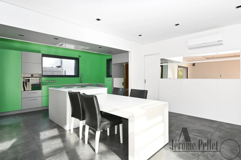 Idéalement située en plein coeur de Communay, à deux pas des commerces, écoles et commodités, cette superbe maison contemporaine de plain-pied développe environ 235 m2 habitables, alliant volumes généreux, luminosité et prestations haut de gamme. Dès l'entrée, vous serez séduit par une pièce de vie spectaculaire d'environ 70 m2, baignée de lumière grâce à de larges baies vitrées, offrant une ouverture directe sur la terrasse en composite et la piscine. La cuisine ouverte, moderne et conviviale, s'intègre parfaitement à cet espace pensé pour recevoir. > Côté nuit, la maison propose : 6 chambres, dont une chambre avec salle d'eau et WC, une suite parentale avec dressing, salle de bain avec WC, et accès direct à la terrasse et à la piscine. > Espaces loisirs & détente : - un espace billard, - une salle de jeux > À l'extérieur, implantée sur un terrain de 965 m2, place à la détente sans contrainte : - piscine chauffée, - pool house avec toilettes, - spa, - coin brasero, - cuisine d'été, - aucun entretien grâce à la terrasse composite et au gazon synthétique. > Prestations techniques de qualité : - Chauffage & climatisation par PAC air/air, - Panneaux photovoltaïques (consommation personnelle), - Aspiration centralisée, - Adoucisseur d'eau, - Excellentes performances énergétiques : DPE A (58) GES A (2). Un bien rare sur le secteur, offrant confort, modernité et qualité de vie, idéal pour famille ou cadres recherchant espace, confort et qualité de vie, tout à pied. Cette villa est un véritable coup de coeur, idéale pour une famille en quête de confort et de sérénité. Elle vous est proposée au prix de 650 000 EUR - Honoraires inclus charge vendeur - Taxes Foncières 2025 : 2395 EUR. Pour plus d'informations ou pour organiser une visite, n'hésitez pas à nous contacter ! >> Pour plus de détails, venez découvrir ce bien sur notre site internet www.jeromepellet.fr Les informations sur les risques auxquels ce bien est exposé sont disponibles sur le site Géorisques : www.georisques.gouv.fr