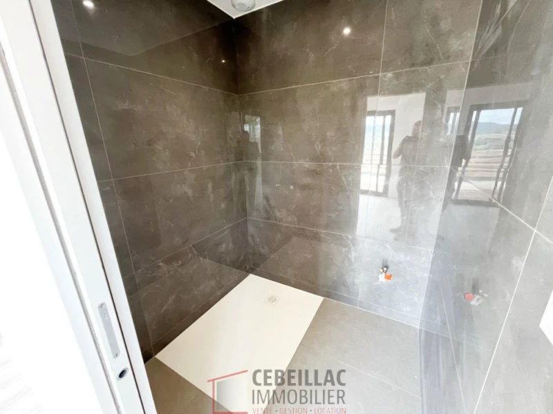 Réf. EF893 L'Agence Cebeillac Immobilier vous propose à la vente cette magnifique villa neuve de 5 pièces, d'une surface de 159 m2, avec terrasse et balcon, édifiée sur une parcelle de 365 m2. Située au sommet de la commune de Corent (63670), cette villa moderne de style inversé vous séduira par ses 4 chambres, sa vue imprenable, son environnement calme et ses prestations de qualité. Elle se compose d'une entrée, d'un couloir desservant deux chambres de 12 et 14m2 (dont une qui donne sur le balcon filant), d'une suite parentale de 15m2 avec une douche à l'italienne et dressing ouvrant sur le balcon filant de 7m2, d'une salle de bains, d'un wc séparé et d'un accès au garage de 25m2. En rez de jardin, vous découvrirez une grande pièce de vie lumineuse de 55m2 avec un espace pour une cuisine ouverte, un salon/séjour donnant sur une terrasse de 24m2, une suite parentale de 16m2 avec douche à l'italienne et dressing, une buanderie de 12m2 ainsiqu'une cave de 8m2. Deux places de stationnement complètent ce bien. Chauffage par pompe à chaleur (PAC) avec plancher chauffant Menuiseries PVC double vitrage Volets roulants électriques Pour visiter ou obtenir plus d'informations, contactez IMMO CEBEILLAC AUVERGNE. Le prix de vente est de 338 000 EUR dont 4 % ttc de frais d'agence à la charge de l'acquéreur. Les informations sur les risques auxquels ce bien est soumis sont disponibles sur le site georisques.gouv.fr. Enfin, vous pouvez retrouver tous les biens à la vente et le barème des honoraires de Cebeillac Immobilier, 8 bis cours Sablon à Clermont-Fd (63) sur le site internet de l'agence.