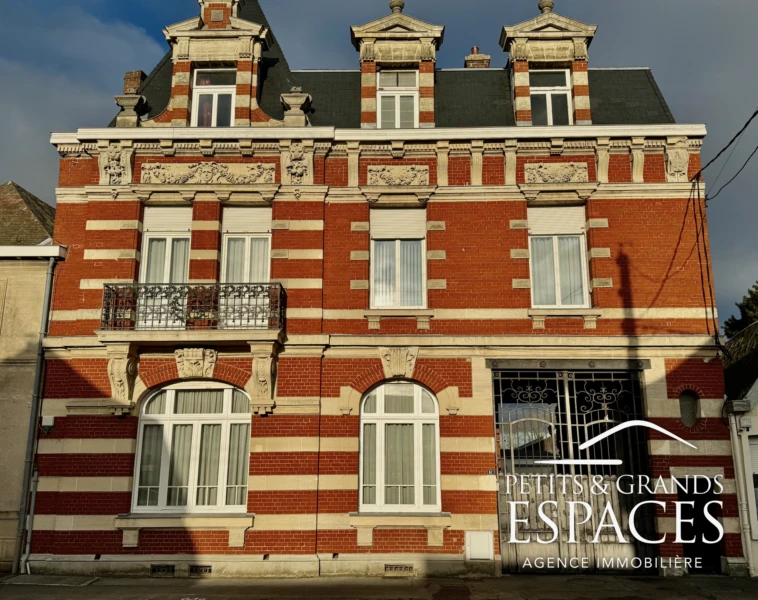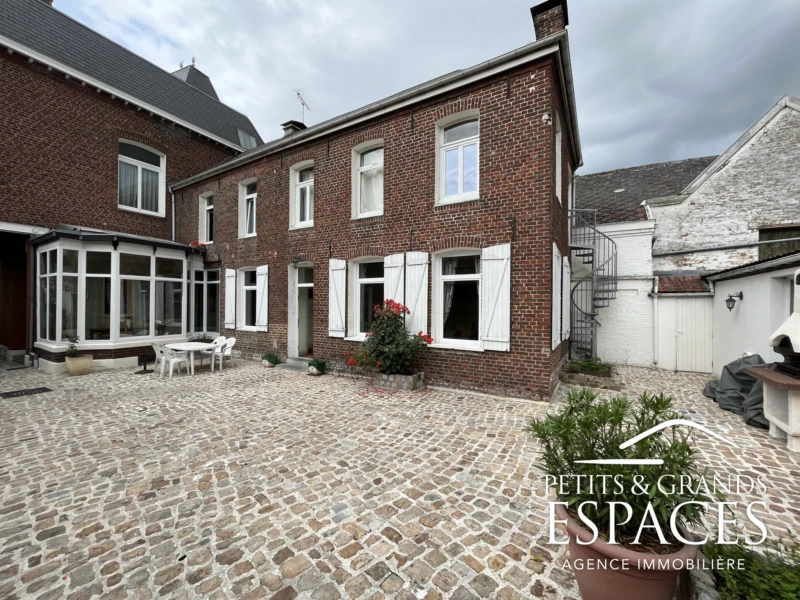 De nombreuses photos à découvrir sur notre site petitsetgrandsespaces.fr Petits & Grands Espaces vous présente cette magnifique propriété d'une surface habitable de 303 m2 parfaitement entretenue. Vous serez situé au coeur du village de CURGIES, à moins de 10 minutes de Valenciennes par les axes autoroutiers rapidement accessibles. Cachet préservé avec parquets, moulures, cheminées, hauteurs sous plafonds, yoiture en ardoises naturelles récente. Idéal projet chambres d'hôtes aux portes de l'Avesnois. Vous y découvrirez : - Au rez-de-chaussée : hall d'entrée, spacieux salon-salle à manger de 45 m2, cuisine équipée d'environ 35m2 avec espace repas , salon TV ou chambre, cellier, WC, cave. - Au 1er étage : dégagements, 5 chambres dont une suite parentale avec salle de bain, wc, une salle de douche avec wc. - Au 2ème étage : dégagements, 2 chambres, 2 greniers dont un aménageable. - A l'extérieur : garage indépendant 2 véhicules + espace atelier, cour pavée 160 m2 avec stationnement plusieurs véhicules, portail en fer forgé. Prestations : menuiseries PVC double vitrage, alarme, visiophone, chauffage individuel gaz. SARL PETITS & GRANDS ESPACES - 8 rue Henri Harpignies 59300 FAMARS Carte professionnelle no CPI 5907 2022 000 000 010 délivrée par la CCI de VALENCIENNES Les informations sur les risques auxquels ce bien est exposé sont disponibles sur le site Géorisques : www.georisques.gouv.fr
