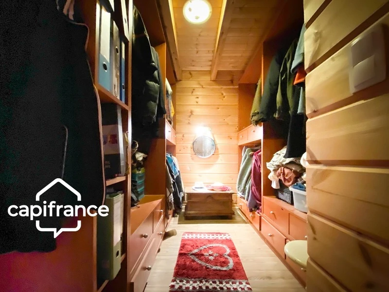 CUZIEU 01300 à VENDRE cette maison de plein-pied 146 m2, garage , piscine , sur terrain 1165 m2 C'est une belle maison construite en MADRIERS de BOIS ( construction Haut de Gamme par FINN-EST ) , 2 chambres , séjour-salon-cuisine ouverte , mézzanine , cellier-buanderie , 2 wc , 2 salles d'eau , terrasse couverte 35 m2 , Piscine , Garage , terrain clos arboré , portail automatique.. Ces constructions en MADRIERS de BOIS sont particulièrement recherchées pour leur isolation, leur durabilité et leur caractère chaleureux Vous allez apprécier cette maison de plein pied, sans travaux à prévoir, grâce à un entretien constant et rigoureux : pierres apparentes, béton ciré, aménagements exterieurs Vous êtes accueillis par une belle terrasse abritée de 35 m2 qui protège l'entrée des lieux Dès la porte franchie, on est charmé par l'ambiance BOIS créé par les pièces de vie spacieuses et ouvertes . L ENTREE distribue les différentes pièces sur un même plan A droite: la SALLE A MANGER avec sa CUISINE OUVERTE équipée pour les moments de convivialité entre amis le SALON, où trône un poêle Alsacien en Faience Blanc qui vous parle de soirées chaleureuses et douillettes De plus l ' importante HAUTEUR SOUS PLAFOND donne une belle impression aérée , lumineuse et confortable A Gauche de l'entrée c'est l'ESPACE NUIT ; là se trouve une grande CHAMBRE PARENTALE avec salle d'eau privative , un DRESSING , WC indépendant , ainsi qu' une seconde CHAMBRE avec cabine de DOUCHE privative Revenons dans l'entrée : là un escalier vous permet d'accéder à la MEZZANINE de 40 m2 , c'est un bel espace pour poser votre BUREAU , une SALLE DE JEUX et de DETENTE ou encore une CHAMBRE D APPOINT .. selon vos besoins !vos envies POUR LE CONFORT : ACCES HANDICAPE VOLETS ROULANTS electriques FENETRES OSSILOBATTANTES MOUSTIQUAIRES CHAUFFAGE PAR LE SOL POMPE A CHALEUR CLIMATISATION AIR-AIR FIBRE CHAUFFE-EAU THERMODYNAMIQUE POELE A BOIS ALSACIEN trs économique TERRASSE ABRITEE PISCINE 8/5 m2 GARAGE 2 voitures et ATELIER fermé 5 places de stationnement COUR EMPIERREE PORTAIL automatique TERRAIN CLOS arboré L Les honoraires sont à la charge du vendeur. Les informations sur les risques auxquels ce bien est exposé sont disponibles sur le site Géorisques : www. georisques. gouv. fr. Réseau Immobilier CAPIFRANCE - Votre agent commercial (RSAC N°388 626 954 - Greffe de BOURG EN BRESSE) Eliane GUILLET Entrepreneur Individuel 06 23 97 85 30 - Réf.946964
