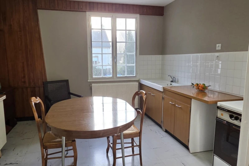 Proche du centre, dans un hameau résidentiel, coquette maison de ville mitoyenne sur un côté et construite sur sous-sol, pour une installation immédiate avec tout confort. Parfaitement entretenue, l'habitation d'env. 114m2 env. se répartit sur 2 niveaux avec au niveau principal : hall entrée, lumineux séjour avec accès balcon et cuisine semi-aménagée. Un dégagement avec placard mène à 2 chambres dont 1 avec accès balcon, salle de bains et wc séparés. A l'étage, grande mezzanine et 3è chambre indépendante. Au sous-sol semi-aménagé : hall d'accès, cuisine d'été-buanderie-chaufferie (chaudière gaz de ville récente), atelier, garage et cave. L'extérieur à l'image de l'intérieur, offre un espace agréable et clos, joliment aménagé de 377m2 avec cour gravillonnée, terrasse couverte, jardin arboré avec divers massifs et remises. Idéale maison de famille à taille humaine proche de tous les commerces et services à pied...A visiter sans attendre !!