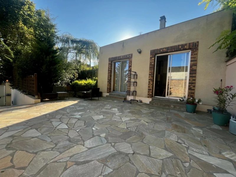 Rare sur le secteur Aux portes du centre-ville et à seulement 5 minutes à pied de la gare, venez découvrir cette charmante meulière rénovée de plain-pied, prête à emménager, sans aucun travaux à prévoir. Elle se compose d’une cuisine entièrement équipée de marque NOLTE, d’un salon chaleureux avec poêle à bois, ainsi que de quatre chambres dont une avec placard, une avec salle d’eau et une avec un accès au grenier aménagé. Une buanderie avec accès à une cour et une petite dépendance viennent compléter l’ensemble. Le sous-sol permet le stationnement d’un véhicule. À l’extérieur, vous profiterez d’une grande terrasse et d’un beau jardin paysagé, parfaits pour des moments de détente.