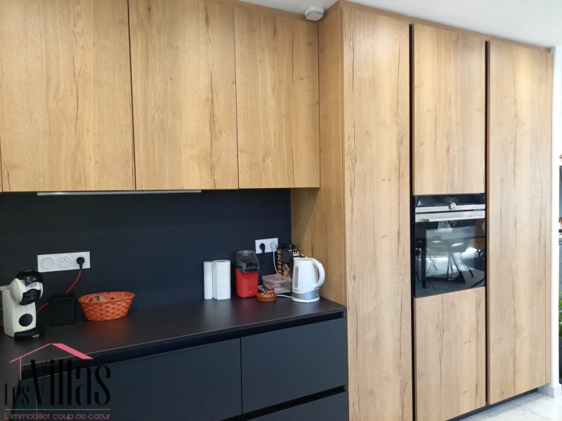 L'agence LES VILLAS vous invite à découvrir aux portes de Saint Cyprien, cette magnifique villa d'architecte à la conception et aux matériaux très qualitatifs. Proche tous axes, commerces et services, elle saura séduire les plus exigeants. Bel espace de vie de 61 m2 traversant Est Ouest, aux larges ouvertures vers jardin et piscine. Cuisine ouverte très esthétique de marque allemande ROTPUNKT (les électroménagers sont discrétement dissimulés, même la hotte). Une entrée avec vestiaire et WC de courtoisie, et une belle buanderie cellier. Côté nuit : une aile parentale avec grande suite lumineuse, salle de bains et douche, dressing, puis une aile avec deux autres suites dotées de salle d'eau et placards. Par un bel escalier métal et céramique, on accéde à une vaste pièce de 53 m2 donnant sur une terrasse avec vue de 50 m2. Actuellement aménagée en salon cinéma. Cette pièce dispose d'une salle d'eau et pourrait devenir une superbe master-room. Le garage de 30 m2 est carrelé, isolé et climatisé. Le stationnement pour 3 à 4 véhicules est possible sur la parcelle par un large portail domotisé, comme le reste de la maison. La piscine de 10 x 4 en pierre style bali, posséde une filtration automatisée aux UV. Cette eau pure circule en cascade ou jets et permet une baignade saine. La terrasse en lame de bois jouxte l'espace plancha pour des repas conviviaux à l'abri de deux stores électriques. Jardin d'ornement facile d'entretien qui entoure la maison de divers points verts, sans vis-à-vis direct. On aime particulièrement : - La construction libre sur 4 faces - le carrelage XXL dans toute la maison - l'escalier et son parement de mur, effet pierre naturelle - l'originalité de la piscine disposant d'une paroi vitrée - DPE A - l'entretien irréprochable du bien - les garanties décennales pour la maison - la proximité du littoral et des commodités. Pour plus de renseignements, contactez Laurence au 06 30 86 27 23 Les honoraires sont à la charge du vendeur. Les informations sur les risques auxquels ce bien est exposé sont disponibles sur le site Géorisques : www.georisques.gouv.f