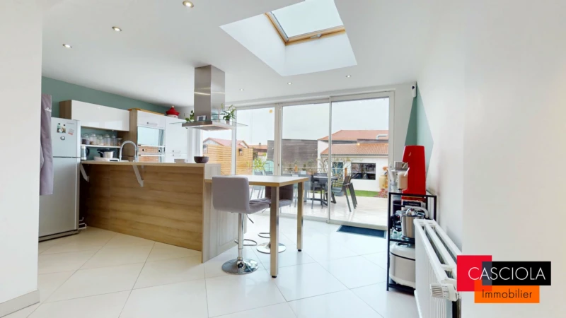 EXCLUSIVEMENT CHEZ CASCIOLA IMMOBILIER FEY - Coeur du village - au calme - Maison mitoyenne parfaitement tenue offrant de très belles prestations! Au rez-de-chaussée, l'entrée distribue une salle de douches avec WC et surtout un vaste et lumineux espace de vie (salon/séjour/cuisine) de plus de 60m² donnant accès à la terrasse et au jardin aménagé, arboré et entièrement clos. Au sous-sol (semi-enterré) une magnifique suite parentale d'environ 40m² a été aménagée. L'étage quant à lui est composé de trois chambres supplémentaires et une salle de douches. A l'extrémité du jardin, cette maison dispose également d'un garage aujourd'hui aménagé en salle de sport. Le chauffage est assuré par une chaudière gaz en plus d'un poêle à bois, les menuiseries sont en double vitrage PVC. Pas de travaux à prévoir, vous n'aurez qu'à y poser vos valises! Honoraires inclus de 5.26% TTC à la charge de l'acquéreur. Prix hors honoraires 312 550 €. Classe énergie C, Classe climat C Montant estimé des dépenses annuelles d'énergie pour un usage standard : entre 1520.00 € et 2110.00 € sur les années 2021, 2022 et 2023 (abonnements compris). Les informations sur les risques auxquels ce bien est exposé sont disponibles sur le site Géorisques : georisques.gouv.fr.