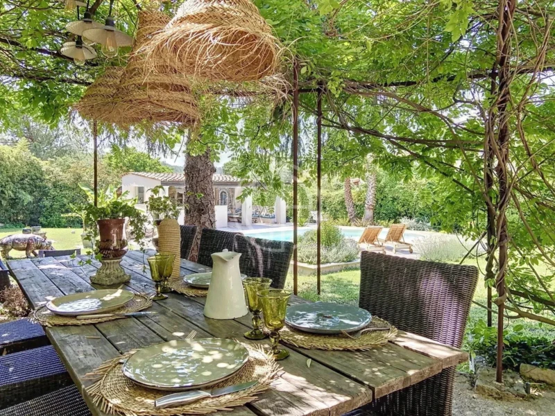SUPERBE VILLA DE CHARME CO-EXCLUSIVITÉ - NOUVEAU !!! Proche Mouans Sartoux - Nichée dans un environnement paisible et résidentiel, à deux pas des commerces tout en bénéficiant d'un calme absolu, cette élégante maison séduit son charme intemporel. Edifiée sur un beau terrain plat de 1.800m2, la villa bénéficie d'un ensoleillement optimal. L'intérieur se compose de confortables espaces de vie avec un salon cheminée ouvert sur les terrasses, salle à manger, spacieuse cuisine équipée, buanderie, coin bureau. A l'étage, l'espace nuit offre 3 grandes chambres toutes avec leur salle d'eau/ bain, dont la suite parentale avec sa terrasse et sa vue dégagée sur les collines. En rez-de-jardin, un appartement indépendant pour les invités. À l'extérieur, la piscine s'intègre parfaitement dans un cadre enchanteur avec son pool-house et sa cuisine d'été totalement équipée, enfin une pergola permet de profiter de la quiétude des lieux selon les différents moments de la journée. En complément: abri 2 voitures et plusieurs places de parking, baies à galandage, climatisation, chauffage au sol... Une propriété alliant charme, authenticité et prestations contemporaines. A VISITER ABSOLUMENT, Vous serez conquis par le lieu. Les informations sur les risques auxquels ce bien est exposé sont disponibles sur le site www.georisques.gouv.fr