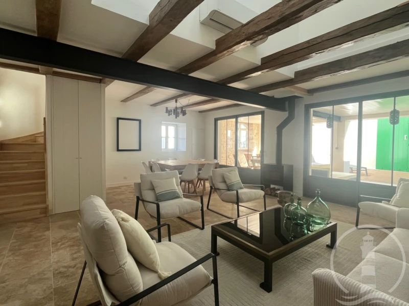 Découvrez cet ancien chai entièrement rénové avec beaucoup de charme offrant de belles prestations au coeur du village du Bois-Plage, Zone non-submersible. Alliant la beauté des vieilles pierres et le bois, cette maison de 6 pièces, totalement climatisée, est à quelques pas de la place du marché et de tous les commerces. Le rez-de-chaussée se compose d'une pièce de vie lumineuse avec sa cuisine ouverte et équipée. Son poêle à bois et sa lumière zénithale en font un espace convivial et chaleureux. Vous y trouverez également une chambre avec sa propre salle d'eau privative et des WC indépendants. À l'étage, un palier dessert quatre chambres spacieuses avec rangements, une salle de bain avec baignoire, une salle de douche séparée ainsi que des WC indépendants. Côté extérieur, profitez d'une grande terrasse sous préau et d'une cour.