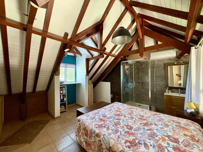 Située dans un environnement calme et ventilé, à proximité des commodités et des plus belles plages du Moule, cette superbe propriété d'architecte offre un cadre de vie idéal alliant confort, rentabilité et authenticité créole. La maison principale T4 de 102,5 m2 habitables + terrasse 30 m2 comprend un salon lumineux avec bar américain, une cuisine équipée avec nombreux rangements, un cellier, un dégagement desservant 2 chambres climatisées avec placards, une salle d'eau et un WC indépendant. À l'étage : une suite parentale avec salle d'eau, WC. A l'extérieur, une belle terrasse avec vue sur la piscine et un débarras. Le Gîte T3 de 74 m2 habitables + terrasse 32 m2, idéal pour un rendement locatif saisonnier ou pour recevoir famille et amis, le gîte. Il se compose d'un salon accueillant, une cuisine fonctionnelle, une salle d'eau avec WC, deux chambres, dont une à l'étage et une terrasse. La propriété vous fera bénéficier de plusieurs prestations : Piscine au sel 8x4 m (moteur à vitesse variable neuf avec le liner récent) Carport pouvant accueillir deux véhicules + atelier Groupe électrogène + citerne de 3000L Système de vidéo surveillance avec 5 caméras Terrain clos et paysager de 925 m2 Un bien alliant confort, charme et rentabilité, parfait pour une résidence principale avec activité touristique ou un investissement locatif. Contactez-nous dès maintenant pour organiser une visite 0590. 38. 10. 88.