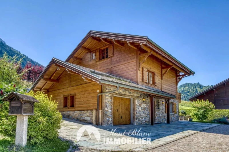 Chalet aux Contamines-Montjoie Ce chalet est situé aux Contamines-Montjoie, A deux pas du village, face à la piste de ski de Loyers, secteur calme et ensoleillé avec une superbe vue sur les montagnes environnantes, Edifié sur environ 754m² de terrain et 3 niveaux composés de : Au rez de chaussée une grande entrée avec placards, une chambre, salle d'eau et espace détente avec un sauna, un grand garage pour la voiture et le matériel de sport, A l'étage une belle pièce de vie avec cheminée, cuisine ouverte, 1 terrasse couverte et un balcon côté Sud, 1 chambre ensuite avec salle de bains, Sous combles, une grande chambre avec balcon côté Sud, une chambre et une salle de bains, Jardin arboré avec spa, Le chalet est en parfait état, matériaux de qualité (toiture tavaillon, sous-bassement en pierre...) Vendu meublé, A visiter sans tarder !