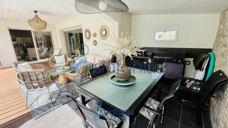 Sinfonia Immobilier vous présente cette magnifique villa de plain-pied, idéalement située à seulement 3 minutes à pied du centre de Mauguio, de ses commerces et commodités, tout en étant dans un environnement calme absolu. Construite en 2005, cette maison parfaitement entretenue offre des prestations de qualité et un confort optimal. Vous serez immédiatement séduit(e) par sa pièce de vie spacieuse de plus de 55 m2 avec cuisine américaine entièrement équipée, ouverte sur la terrasse et la piscine orientées sud-ouest, pour une ambiance chaleureuse et lumineuse. À l'extérieur, un jardin arboré sans vis-à-vis vous attend avec un espace couvert aménagé en cuisine d'été : idéal pour recevoir. Côté nuit, vous disposez de 3 chambres, dont une superbe suite parentale de 38 m2 avec baignoire balnéo, douche à l'italienne et dressing. Prestations complémentaires : Climatisation gainable Volets roulants électriques Menuiseries aluminium Visiophone Forage et arrosage automatique Panneaux photovoltaïques (6 kW) installés début 2025 Garage de 36 m2 + possibilité de stationner 3 véhicules supplémentaires dans l'enceinte de la propriété Un bien rare sur le secteur, alliant confort, calme et proximité du centre. Pour plus d'informations ou organiser une visite, contactez-nous ! Les informations sur les risques auquels ce bien est exposé sont disponibles sur le site Géorisques: www.georisques.gouv.f