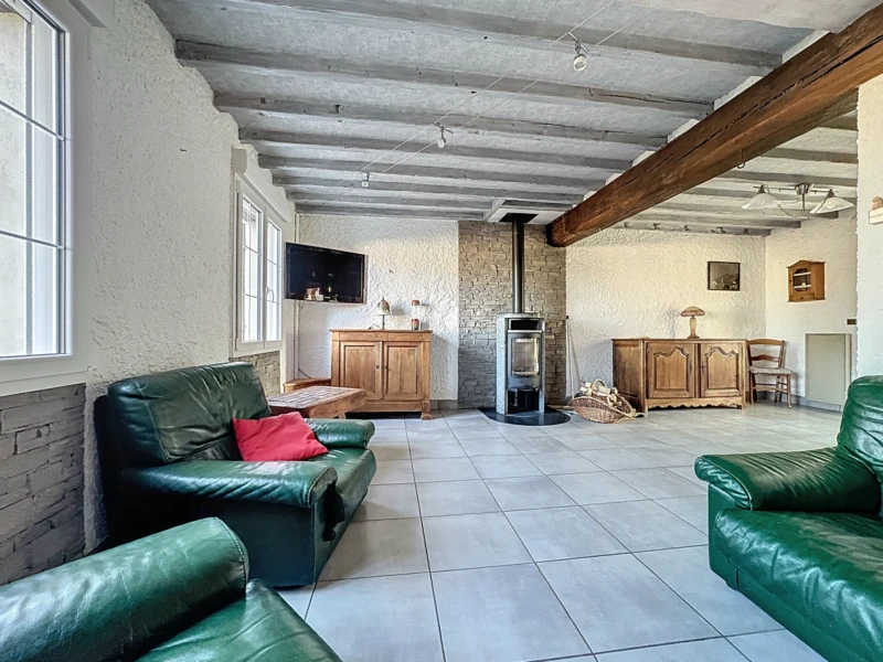 Maison d'habitation comprenant hall d'entrée, salon séjour en L avec poêle à bois, cuisine équipée ouverte sur séjour, bureau ou chambre, salle d'eau avec toilettes, buanderie, véranda chauffée, à l'étage : palier desservant deux chambres, une pièce à usage de chambre, salle de jeux, salle de bains avec toilettes, en annexe : deux garages (un avec cave et accès au vide-sanitaire, l'autre avec grenier), une dépendance, bassin, terrain arboré. Prestations : pavillon traditionnel en parpaings, isolation des murs par polyuréthane 60 mm, de la toiture par 240 mm laine de verre, double vitrage PVC oscillo-battants et volets roulants électriques, porte de garage électrique, adoucisseur, vmc simple flux, poêle à bois pierres ollaire et radiateurs électrique (à inertie sèche et radiant) chauffage électrique au sol pour la véranda, assainissement individuel, double exposition nord/sud. Située à moins de 5 minutes en voiture de plusieurs commerces essentiels, comme un Lidl, un E. Leclerc et un Carrefour Market, et de nombreux autres commerces (restaurants, bar et pub, commerces artisanaux, etc....), mais également pour votre santé, d'un cabinet médical, de deux pharmacies, d'un laboratoire d'analyses, l'éducation et la culture ne sont pas en reste, la commune est dotée d'un transport scolaire. De plus, à Montmirail vous aurez également l'accès à l'Espace Loisir et Culture (ELC) regroupant bons nombres d'associations sportives et culturelles, et un cinéma. Pour les amoureux de la nature et de verdure, la maison offre un accès rapide à la Forêt et d'autres espaces verts à proximité Cette annonce vous est proposée par M. Stéphane PAQUET - EI - NoRSAC: 449 308 204, Enregistré au Greffe du tribunal de commerce de REIMS