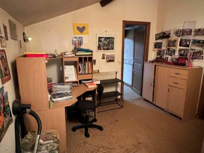 Belle maison en pierre avec de superbes vues sur la campagne à proximité de Nanteuil-en-Vallée. Cette maison pleine de cachet et d'originalité offre un énorme séjour avec un superbe âtre, une cuisine moderne, un grand garage attenant au séjour et cinq chambres à l'étage. Rez-de-chaussée-Cuisine aménagée (21m²) : carrelage-Salle d'eau (2m²) : carrelage, douche-Salon (65m²) : plancher, foyer ouvert, poutres et pierres apparentes-Garage attenant (60m²) : béton au sol, porte électrique, place pour deux voitures Etage-Palier (10m²) : plancher, poutres apparentes-Chambre 1 (11m²) : lino-Salle d'eau (7m²) : lino, douche, lavabo-WC (1m²) : plancher-Chambre 2 (11m²) : moquette, velux-Chambr?