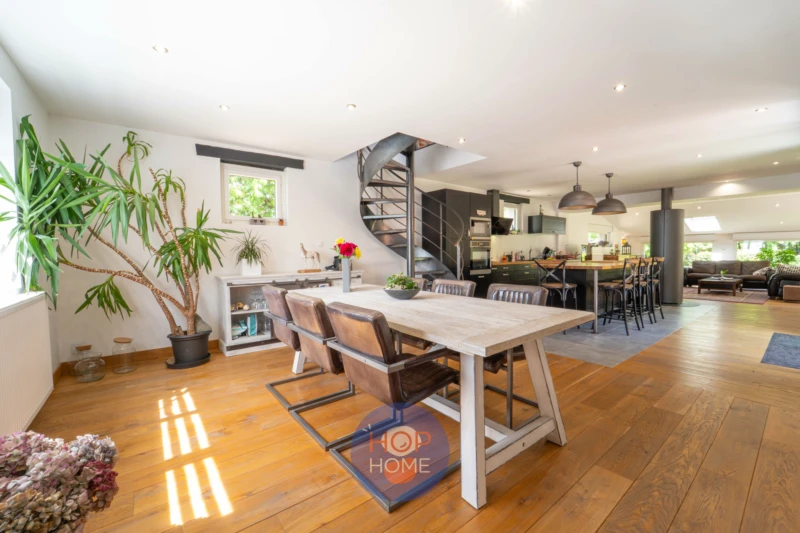 Votre agence HOP HOME est heureuse de vous proposer à la vente ce magnifique corps de ferme semi-plain-pied en U, situé dans un environnement paisible de la commune de NEUVE-CHAPELLE, à seulement 1km du centre-ville et de ses commodités ! D'une surface habitable de 220m2pour 314m2de surface utile, cette propriété, bâtie sur une parcelle de plus de 2500m2, se présente comme suit : *RDC : une accueillante entrée s'ouvre sur une grande et lumineuse pièce de vie, avec poêle à bois, incluant la cuisine entièrement équipée, le tout offrant un confortable espace à vivre de près de 90m2 ! Vous trouverez une sublime suite parentale comprenant un dressing et une grande salle de bains incluant double vasque, douche italienne et baignoire. Un bureau, idéal pour le télétravail, une buanderie pratique, avec un accès au garage de près de 30m2 avec mezzanine, un WC séparé ainsi qu'une cave de 12m2 complètent le rez-de-chaussée ; *ETAGE : un premier escalier permet d'accéder à une seconde suite parentale avec sa salle de bains comprenant double vasque et baignoire, et sans oublier un balcon ! Depuis la pièce à vivre, un second escalier permet d'accéder à un palier desservant 2 autres confortables chambres, avec placard intégré, de plus de 15m2 chacune ! *EXT : une agréable cour intérieure pavée d'environ 100m2 vous permettra de profiter de moments agréables en famille ou entre amis, avec son barbecue en brique, sans oublier une vue verdoyante et sans vis-à-vis du jardin entièrement entouré et arboré pour des instants au calme ! Passé le portail motorisé, vous trouverez un large emplacement pour stationner plusieurs véhicules ; *HOP-Avis : Des volumes plus que généreux dans un cadre verdoyant et calme, idéal pour y loger toute la famille, rare sur le secteur ! Pour toute demande de renseignements complémentaires et/ou demande de visite, n'hésitez pas à nous contacter. DPE : C (147) / GES : C (26) réalisé le 29/04/2025 Energie finale : 125 kWh / m2 / an Montant estimé des dépenses annuelles d'énergie pour un usage standard : entre 3100 EUR et 4194 EUR par an. Prix moyens des énergies indexés sur les années 2021, 2022 et 2023 (abonnements compris). Les informations sur les risques auxquels ce bien est exposé sont disponibles sur le site www.georisques.gouv.fr Honoraires à la charge du Vendeur.