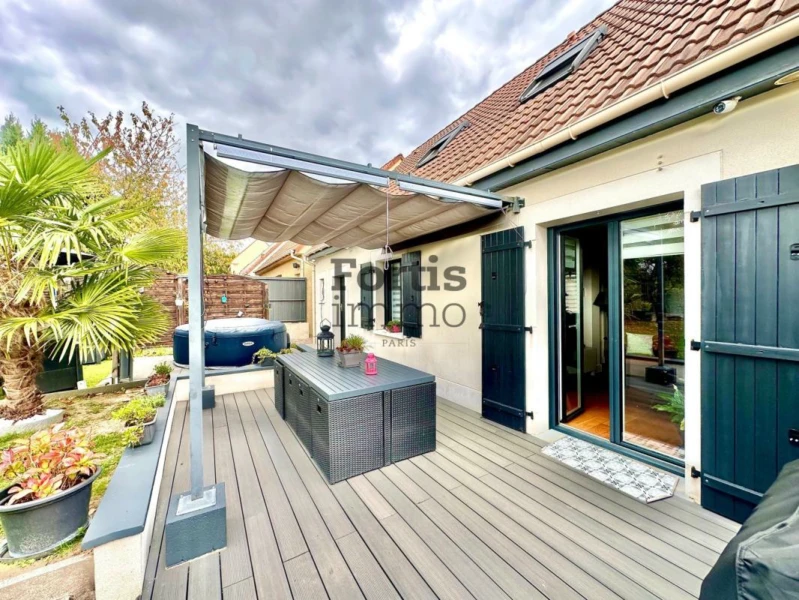 À Ollainville, ville prisée et recherchée pour son calme, sa tranquillité, son cadre verdoyant, et sa situation géographique, au pied des écoles et d'une crèche, à 5 minutes à pied du centre ville, des commerces, des médecins, d'une maison médicalisée etc, à 20 minutes à pied de la gare RER C d'Egly et à 10 minutes d'Arpajon et de la N20. Maison individuelle de 105m2 sur deux niveaux, composée de: une pièce de vie de 25m2 traversante est/ouest, une cuisine séparée, aménagée et équipée de 9m2, 4 chambres (10m2, 10m2, 9m2 et 9m2, toutes équipées de leur placard/dressing), une salle de bains avec toilettes, une salle d'eau, une pièce palière de 10m2 avec rangements sur mesure, des toilettes séparés, un dressing séparé de 3m2 et un dégagement. Vous bénéficierez également d'un terrain de 450m2 entièrement clos et extrêmement bien entretenu, d'une place de stationnement en pavés, d'un garage de 18,5m2 avec triple accès (extérieur/jardin/maison) avec un espace buanderie et un point d'eau, d'une terrasse de 40m2 en composite avec pergola, d'un chalet de jardin de 10m2. Prestations soignées et de qualité: volets roulants électriques (Vélux inclus), système domotique, extérieurs ( oliviers, palmiers, bananiers), cuisine, verrière, salle d'eau, fibre optique, parquet massif, carrelages, alarme, caméras de surveillance, portail motorisé, visiophone, fenêtres double vitrage oscillo-battantes en alu, etc. Ce bien est en parfait état, car en plus d'un entretien régulier, irréprochable et impeccable, la maison a été partiellement rénovée depuis 2019 (sols, salle d'eau, salle de bains, dressings, cuisine en 2019, les huisseries, porte d'entrée, clôtures, portail motorisé, extérieurs, dallage, terrasse, tableau électrique, prise renforcée pour véhicules électriques, toilettes suspendus, isolation des combles, peintures, etc…). Le secteur très prisé et recherché, l'emplacement du bien, l'habitabilité, l'agencement, les volumes, les prestations soignées et de qualité intérieurs comme extérieurs, et l'excellent état de la maison, vous seront très largement agréables, bénéfiques et profitables. Pour tout renseignement, contactez Marie BELEC au 06.75.77.84.30 ou par email à [email protected] (EI RSAC 900645722 Nanterre)