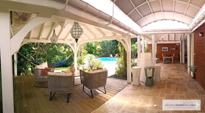 Idéalement située à Petit-Bourg (97170), dans le quartier prisé et serein d'Arnouville, cette superbeVilla créole de 151 m2 habitables est une véritable invitation au bien-être. Très bien entretenue et construite pour être anti-sismique et anti-cyclonique, elle offre un cadre de vie sécurisé et privilégié, sans vis-à-vis, sur un vaste terrain arboré de 1837 m2. La maison se distingue par ses volumes généreux et sa luminosité. Elle propose 5 pièces dont 3 chambres climatisées, toutes ouvertes sur l'espace piscine. L'agencement intérieur est optimisé avec une grande cuisine traversante, véritable coeur de la maison, reliant les espaces de vie et les deux vastes terrasses (41 m2 et 24 m2). L'atout majeur réside dans la somptueuse suite parentale de 48 m2 comprenant une salle de bain complète (douche et bain à remous), toilettes indépendantes, et un immense dressing de 10 m2. Un bureau fonctionnel complète l'espace intérieur. À l'extérieur, profitez d'une belle piscine au sel de 10x5 m et d'un terrain luxuriant d'arbres fruitiers (mangues, avocats, etc.). Ce vaste terrain offre également un fort potentiel de construction supplémentaire, idéal pour un projet d'extension ou de bungalows. Une dépendance de 24 m2 (raccordée eau/électricité) offre un potentiel de studio, bureau indépendant ou d'espace de stockage. Prestations de qualité : Fibre, double vitrage, zone sans coupure d'eau ni d'électricité, et excellente ventilation naturelle. Localisation stratégique : Proximité immédiate des écoles et de la rocade, assurant un accès rapide à la zone de Jarry. Ce petit havre de paix est un lieu de résidence idéal pour une famille cherchant le confort, le calme et une situation centrale pour rayonner sur l'île. Son positionnement privilégié permet un accès rapide à toutes les plages de Guadeloupe, tout en garantissant un environnement totalement préservé des odeurs de sargasses. Prix : 679 900 EUR Net Vendeur Honoraires : 2,72 % TTC à la charge de l'acquéreur Prix Total FAI : 698 900 EUR Bien d'exception à découvrir sans plus attendre. Contactez-nous dès aujourd'hui pour organiser votre visite. 1 - Annonce rédigée et publiée par un Agent Mandataire -