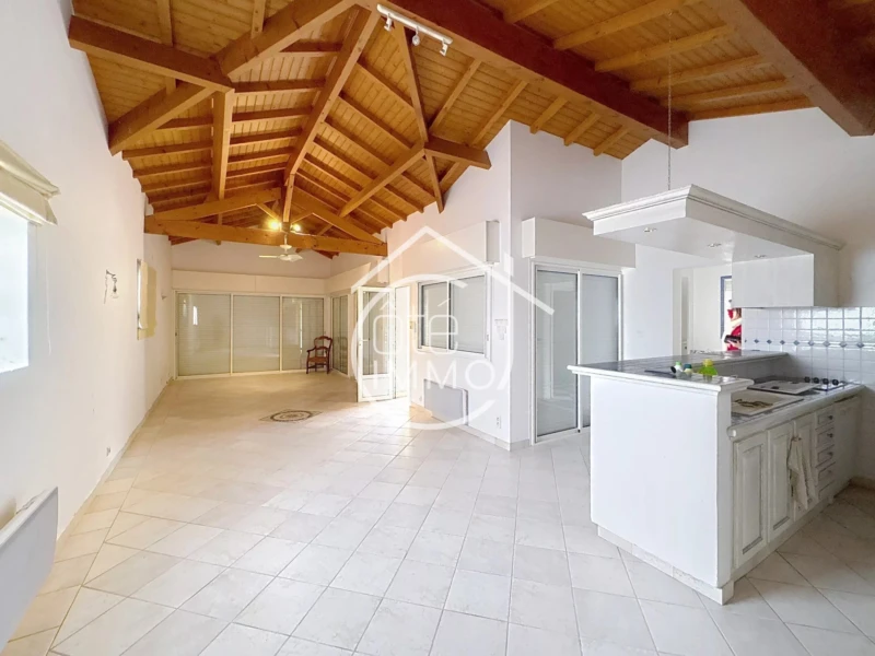 Pineuilh : Charmante Maison avec piscine et jardin arboré En exclusivité, Côté Immo Pays Foyen vous propose, de découvrir cette agréable maison de plain-pied d’environ 117 m² habitable, située dans un environnement résidentiel calme et recherché de Pineuilh, au cœur d’un superbe parc arboré de 2 479 m², entièrement clos et sécurisé par un portail électrique de qualité. La maison offre une distribution fonctionnelle et de beaux volumes. Elle se compose d’une grande entrée, d’un séjour lumineux avec insert, créant une atmosphère chaleureuse, ainsi que d’une cuisine indépendante équipée, agrémentée d’un espace barbecue intérieur. L’espace nuit comprend trois chambres, une salle de bain et des WC indépendants, permettant d’accueillir confortablement une famille. Côté annexes, la propriété dispose d’un garage attenant et communicant, d’un grand double garage ouvert, ainsi que d’un local technique, offrant de nombreuses possibilités de stationnement et de rangement. À l’extérieur, le parc paysager, la jolie allée en pierre et la grande piscine constituent de véritables atouts pour profiter pleinement des beaux jours. Un pool house indépendant d’environ 60 m² vient compléter l’ensemble. Il se compose d’une grande pièce avec cuisine équipée, bénéficie de menuiseries en double vitrage avec volets roulants, et dispose d’une salle d’eau avec WC indépendant. Cet espace est idéal pour recevoir, aménager un espace loisirs ou envisager un usage complémentaire selon les besoins. Des travaux de rafraîchissement sont à prévoir, notamment le remplacement des menuiseries de la maison ainsi que le liner de la piscine, offrant un fort potentiel de valorisation pour cette propriété. À noter : contrôle d’assainissement conforme. Un bien rare sur le secteur, offrant volumes, calme, parc arboré et potentiel, idéal pour une résidence principale familiale.