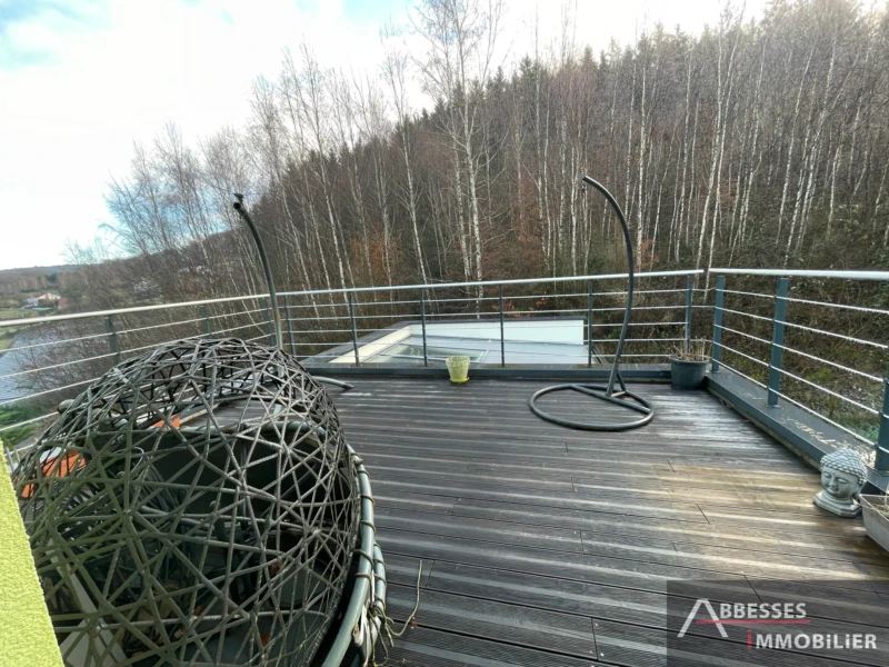 RAON AUX BOIS - Dans un cadre nature en lisière de foret, au calme : Pavillon contemporain en ossature bois de type F5 de 2015 habitable de plain pied. Entrée dégagement, cuisine équipée integrée avec îlot central ouvert sur salon séjour (poêle à pellets) accès terrasse, véranda (actuellement une chambre) accès extérieur, salle de bain avec douche italienne + baignoire, wc, buanderie, garage 1 véhicule. A l'étage : 3 chambres dont une avec dressing + accès terrasse. Terrain clos avec piscine en bois hors sol (4m50 * 8m50), sauna et spa. Terrain en partie clos d'environ 2 798 m2. Chauffage poële à pellets. Convecteurs électrique. Chauffe eau thermodynamique. Fosse toute eaux. Prix : 320 000 EUR * * Honoraires agence inclus à la charge du vendeur DPE : C DPE réalisé le 05/05/2025 - Estimation des coûts annuels entre 1 170 EUR et 1 630 EUR par an - Prix moyen des énergies indexés sur les années 2021, 2022 et 2023 Surface : env 128 m2 Etat des Risques et Pollutions : 'Les informations sur les risques auxquels ce bien est exposé sont disponibles sur le site Géorisques www.georisques.gouv.fr'