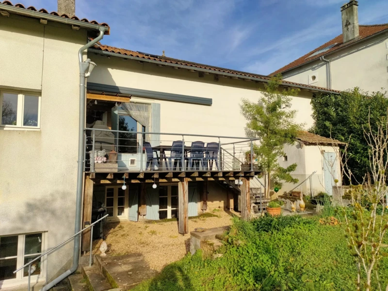Maison de caractère, au bord du lac Magnifique propriété avec grand parc, située proche du lac de la ville historique de Rochechouart. D'une superficie généreuse, cette maison est divisée en deux appartements spacieux, mais elle pourrait également convenir à une grande famille. La présence de deux appartements offre la possibilité d'en habiter un et de louer l'autre. Une vaste grange aménagée offre un atelier et un pont pour les réparations automobiles. Un grand grenier se trouve à l'étage. Le parc offre une vaste pelouse, un grand parking et une vue imprenable sur le lac et la ville de Rochechouart, avec son château et sa belle église. L'appartement du rez-de-chaussée comprend un hall d'entrée, un salon, une cuisine séparée, trois chambres, une salle d'eau et des toilettes séparées. L'appartement du premier étage offre un espace généreux avec un beau salon doté d'une véranda, quelques marches menant à la cuisine ouverte et à un balcon exposé plein sud donnant sur un jardin de 7284 m², 3 grandes chambres, 2 salles de douche, 2 toilettes, une buanderie et un débarras. Presque chaque chambre dispose d'un lavabo et d'une cheminée d'origine. Les deux appartements bénéficient d'un chauffage central par pompe à chaleur et d'un poêle à granulés comme chauffage d'appoint. Douze panneaux solaires sont installés sur le toit. L'immeuble est entièrement équipé de double vitrage et bénéficie d'une excellente isolation. Il est raccordé à une fosse septique récente. A voir!
