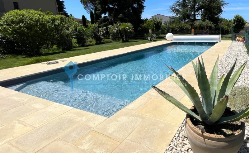 Dans une impasse du quartier recherché des Ors, venez découvrir cette magnifique villa de 150m2 sur une parcelle close et arborée de 1500m2 avec piscine et pool-house. La maison a bénéficié d'une rénovation globale, tant sur le plan esthétique qu'énergétique (DPE B / GES B). En semi plain-pied, la maison se compose comme suit: En rez-de-chaussée, l'entrée avec placard mène à la pièce de vie avec cuisine ouverte haut de gamme pour un total de 46m2. Sa triple exposition garantie une luminosité maximale été comme hiver. Ensuite, la partie salon de 28m2 avec cheminée insert et l'accès à sa mezzanine de 12m2. Après quelques marches, le pallier dessert 3 chambres dont la principale de 20m2, une salle de bain avec douche et baignoire ainsi qu'un wc séparé. En sous-sol, la buanderie avec sanitaire est directement accessible depuis les escaliers. Ensuite vient le garge avec porte motorisée, un atelier et une cave. Côté extérieur, la parcelle est joliement arborée de différentes essences et arbres fruitiers mais surtout d'une superbe piscine 11x4 sécurisée et son pool-house de 15m2 aménagé en studio complet. Un forage est egalement présent sur la parcelle qui alimente l'arrosage automatique et la piscine. L'accès à la maison se fait par une portail électrique et une allée fraîchement bitumée, donnant sur l'entrée de la maison, le garage et un carport traditionnel récent. Pour finir sur le plan technique, voici la liste exhaustive des travaux effectués entre 2022 et aujourd'hui: électricité, plomberie, ballon thermodynamique, isolation des combles, raccordements eau/gaz/tout à l'égoût avant de goudronner, construction du carport, machinerie et volet roulant piscine, façade, menuiseries, moustiquaires et volets roulants. Au plaisir de vous faire découvrir ce joli bien prêt à vivre, je vous dis à bientôt! Cette annonce vous est proposée par Korielle CHEVALIER - EI - NoRSAC: 883 804 411, Enregistré à Greffe du tribunal de commerce de ROMANS COMPTOIR IMMOBILIER DE FRANCE - Plus d'informations sur cif-immo.com - « Les informations sur les risques auxquels ce bien est exposé sont disponibles sur le site Géorisques : www.georisques.gouv.fr » - Annonce rédigée et publiée par un Agent Mandataire -
