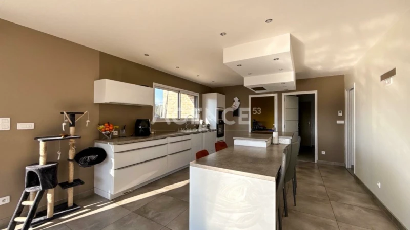 Découvrez cette magnifique maison semi-plain-pied construite en 2017, offrant une surface de 191 m² sur un terrain de 1 346 m². - Au rez-de-chaussée, vous serez accueilli par un hall d'entrée spacieux de 18 m² qui mène à un WC séparé avec lave-mains, ainsi qu'à une salle d'eau de 7,70 m² équipée d'une douche à l'italienne. Vous trouverez également un vaste espace de vie avec un séjour et une salle à manger de 38 m², ainsi qu'une cuisine aménagée et équipée de 18 m², complétée par un cellier de 7 m². - À l'étage, un palier dessert un second WC, une salle de bains avec douche et baignoire, ainsi que 4 chambres. - À l'extérieur, profitez d'un grand jardin avec un verger, d'une terrasse en pierres bleues, d'un parking pouvant accueillir 4 à 6 voitures avec un portail motorisé, ainsi qu'un grand garage avec porte motorisée capable d'accueillir 2 véhicules. Les équipements incluent des menuiseries en aluminium, des volets roulants électriques, un chauffage au sol, un ballon thermodynamique, et un aspirateur centralisé. Pour plus d'informations ou pour planifier une visite, n'hésitez pas à nous contacter ! Les informations sur les risques auxquels ce bien est exposé sont disponibles sur le site Géorisques : www.georisques.gouv.fr